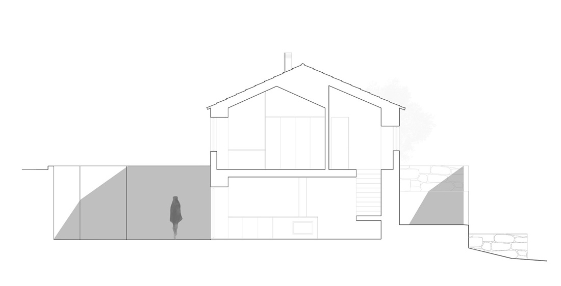 该项目的主要推动力是土地配置,以及该区域传统房屋的既有体积,包括一楼的动物庇护所和一楼的小起居区。低层部分位于地下,被改造成一个宽敞的生活空间,功能区明显不同。