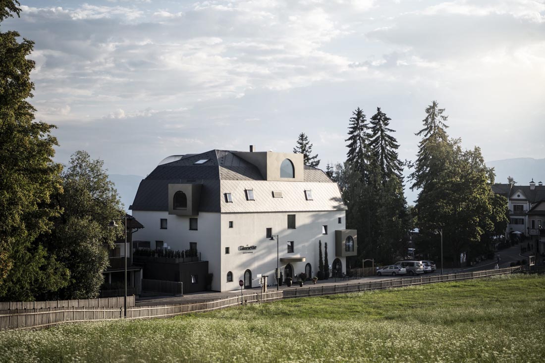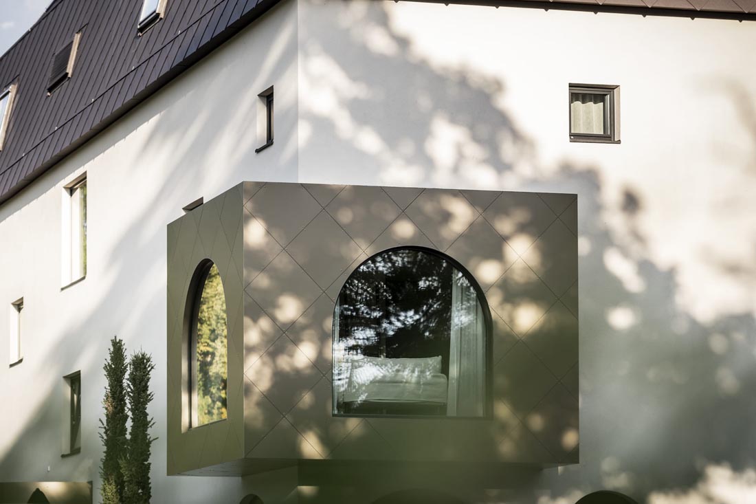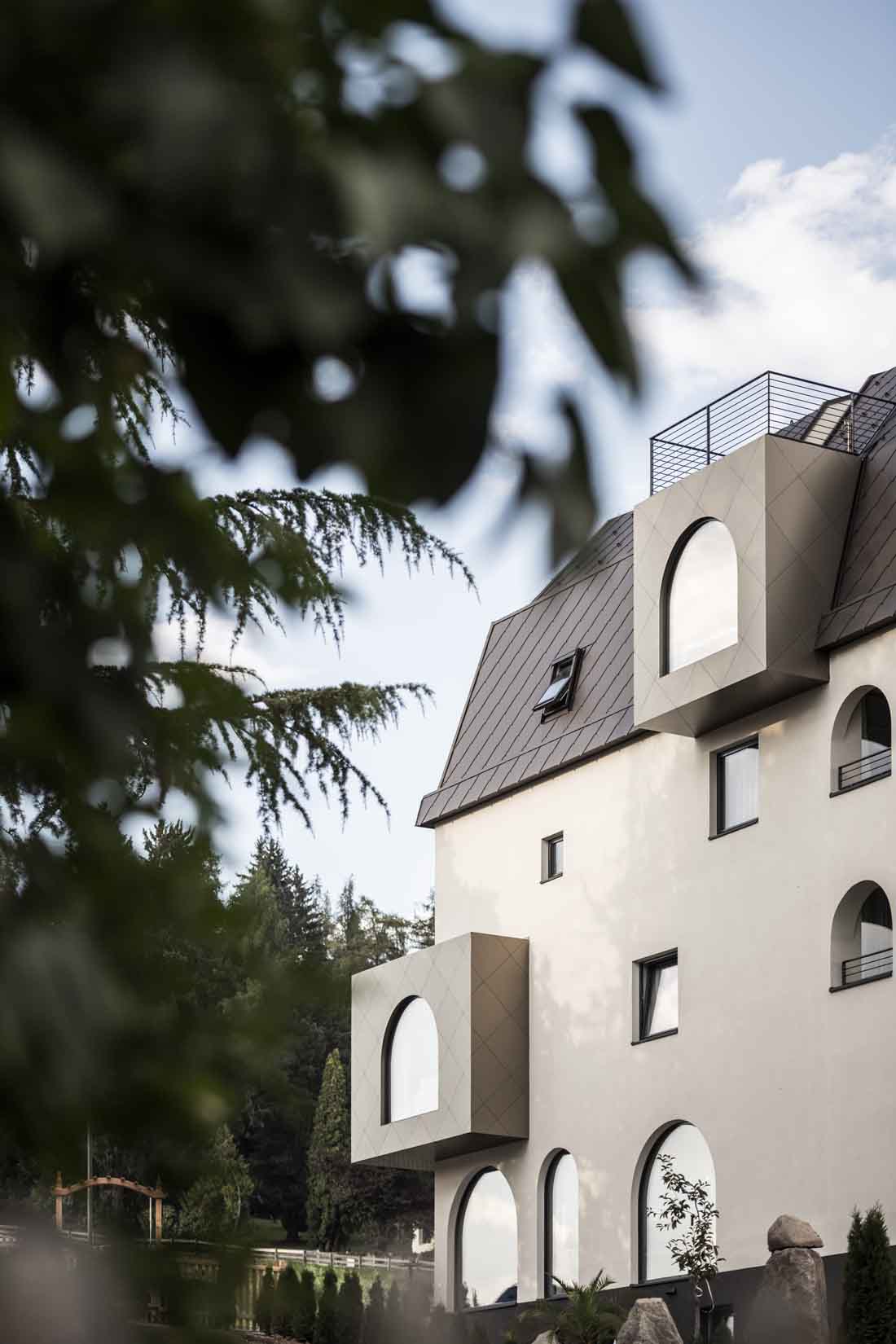 设计师认为,将当地流行元素融入建筑至关重要,比如立面上的拱门和倾斜的屋顶,它们都可以追溯回Oberbozen村庄悠久的历史传统。同时,菱形也作为一种装饰元素,用于里特铁路沿线的许多建筑之中,连接不同的夏季度假目的地。其整体的设计思路显而易见:大量的细节共同形成贯穿整个项目的主线。更有趣的是酒店的空间组织,它巧妙地适应了地形环境。
