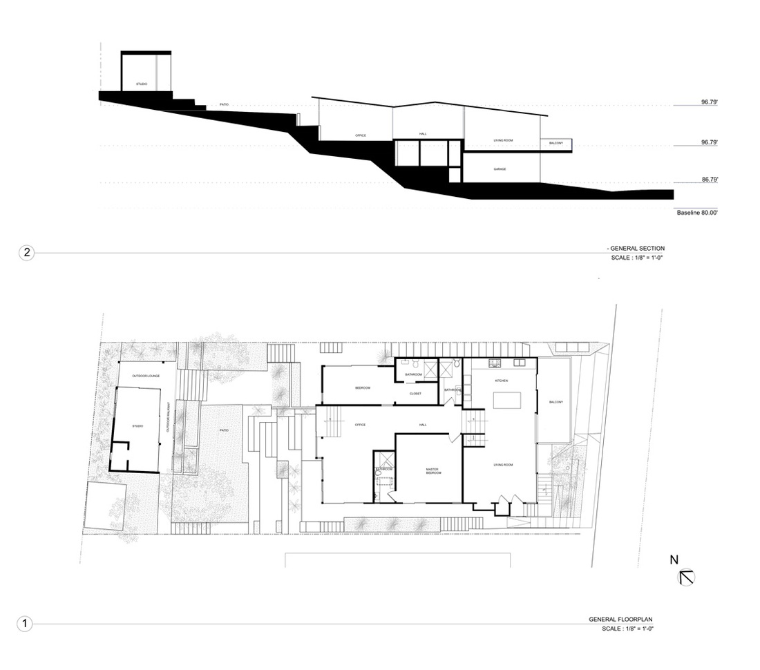 Ramar住宅位于圣莫尼卡的日落公园,距离太平洋约1英里。它坐落在一个面向西南的山丘上。该项目的范围是对1958年建成的2,150平方英尺现有住宅进行内部和外部整体改建。除改建外,还需要其中一位时装设计师的业主拥有工作室空间:能够设计和执行她的工作,并有一个休息区。为了利用景观,光线和海风,设计师决定在地段的后部建造一个独立的结构。