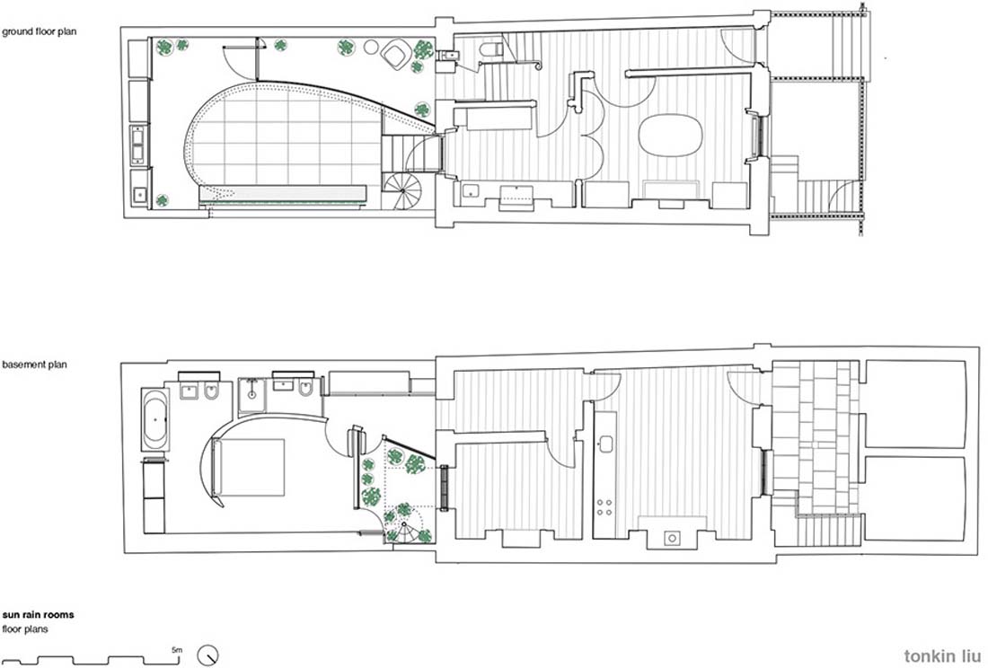 阳光雨露住宅由一幢被列为二级保护建筑的乔治王朝时期联排住宅改造而来。设计师通过放大建筑结构的内部特征,重塑了建筑的后院。改造后的屋子既是工作室,也是一套温馨的居所。