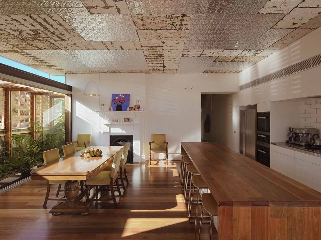 为了适应客户的预算,设计团队保留了大部分原有的住宅空间,仅仅拆除了住宅后侧的单坡屋顶小屋,以便创建一个全新的开放式厨房和餐厅空间;拆下原有的天花板进行修复,并安装到新建的厨房里,从而在减少建筑垃圾、节约能源的同时,将新旧空间联系并统一了起来。此外,设计团队还对现有的阁楼空间进行了改造,以容纳两间全新的敞亮的卧室和浴室。
