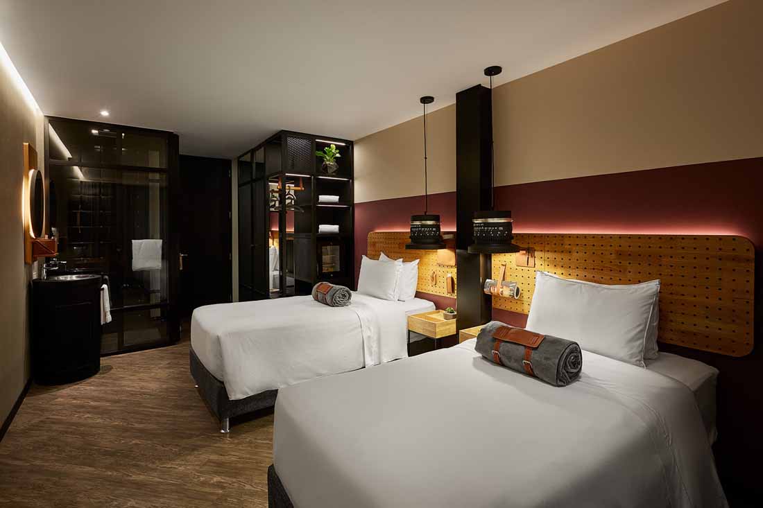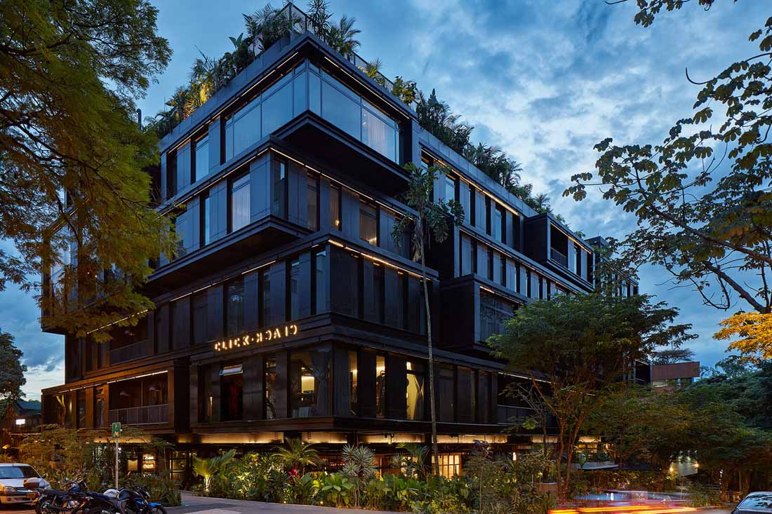 酒店包含了十几种类型的房间,并根据房型大小进行组合和堆叠。阳台、花园和露台将房间相互隔开,同时也将热带气候下的新鲜空气、绿植和舒适的温度带入室内。根据空间的高度及其与建筑内部和外部空间的关系,每间客房都拥有其独一无二的位置:有些位于拐角,有些朝向庭院,还有的朝向内部路径或城市街道。