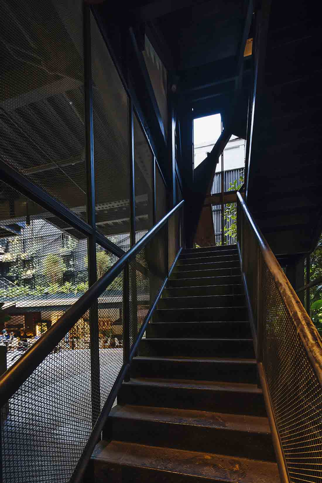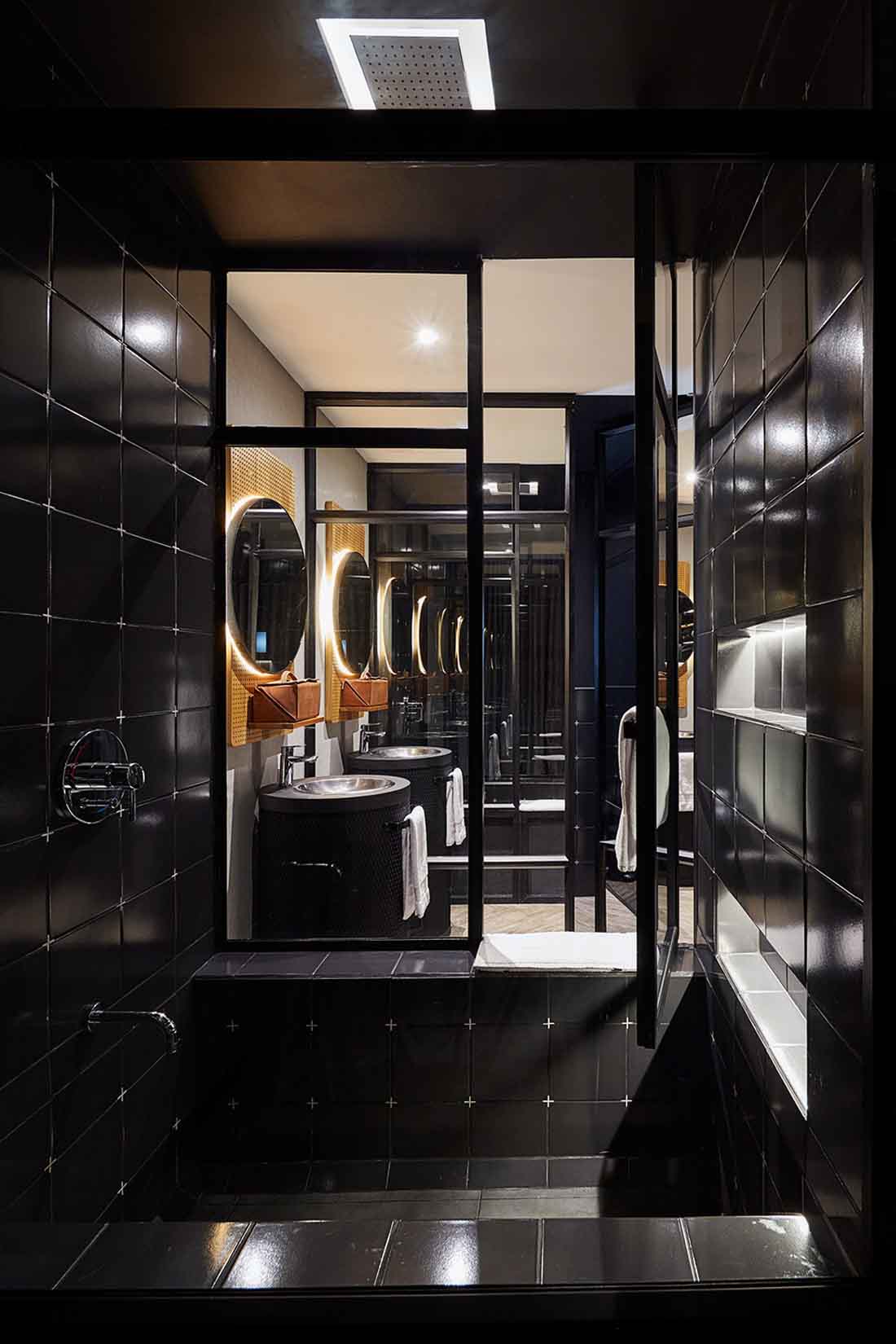 “阴影”构成了整个酒店外观及其周围环境的“主导色”。麦德林的强烈日照为全天赋予了丰富的光影效果,阴影的强度随着时间的推移不断变化,但仍旧以灰色为主调。建筑立面也采用了相同的配色,与周围茂密的植被形成对比与融合并存的关系,与此同时,细腻的灰色调又让它在麦德林的城市环境中显示出独特的个性。