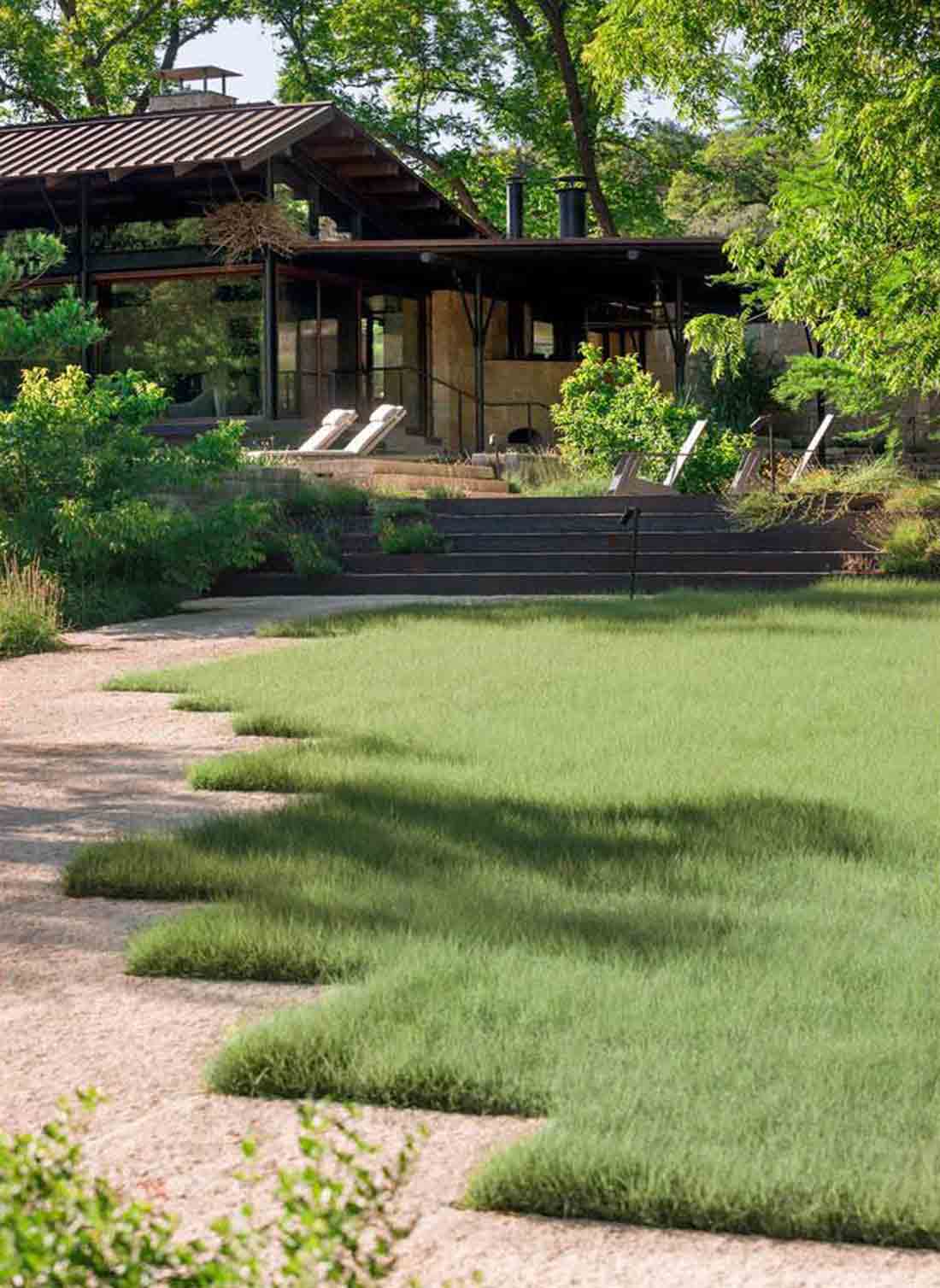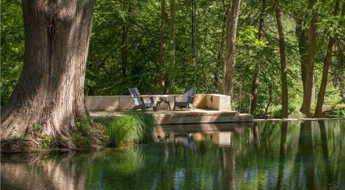 Mill Creek农场坐落于德克萨斯丘陵山区的Medina河谷中,清澈的小溪从两侧流过,环抱着如半岛般向前延伸的基地。采用了开放式布局的农场建筑散落在层叠的花园台地之中,蜿蜒的小路串联起点缀其中的水、火景元素。