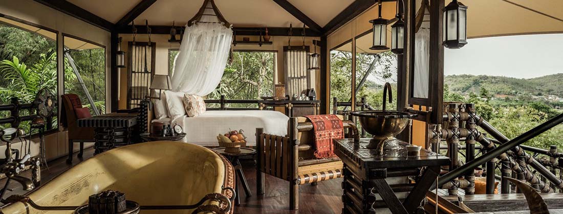 酒店位于泰国北部清莱金三角,曾经是泰国所有罂粟种植的中心,三个国家聚集在这个传奇的地方——泰国,老挝和缅甸。丛林豪华帐篷住宿,由Four Seasons开发,是冒险假期的理想选择,酒店为全新的狩猎风格,被雄伟的山脉环绕,是一个探险的自然天堂。可以与大象一起漫步旅行探索鲁亚克河汇入雄伟的湄公河的神奇之处。