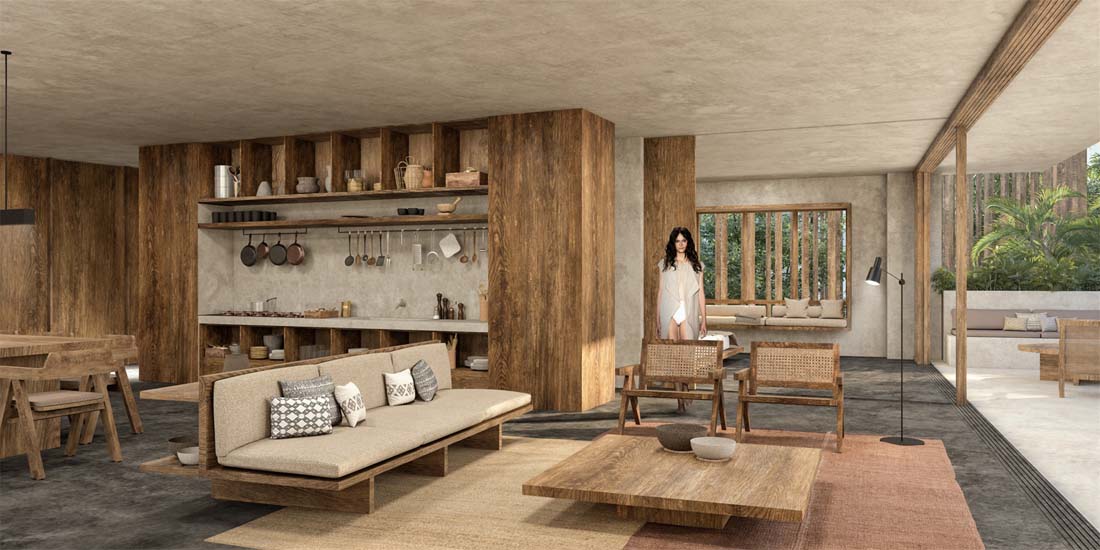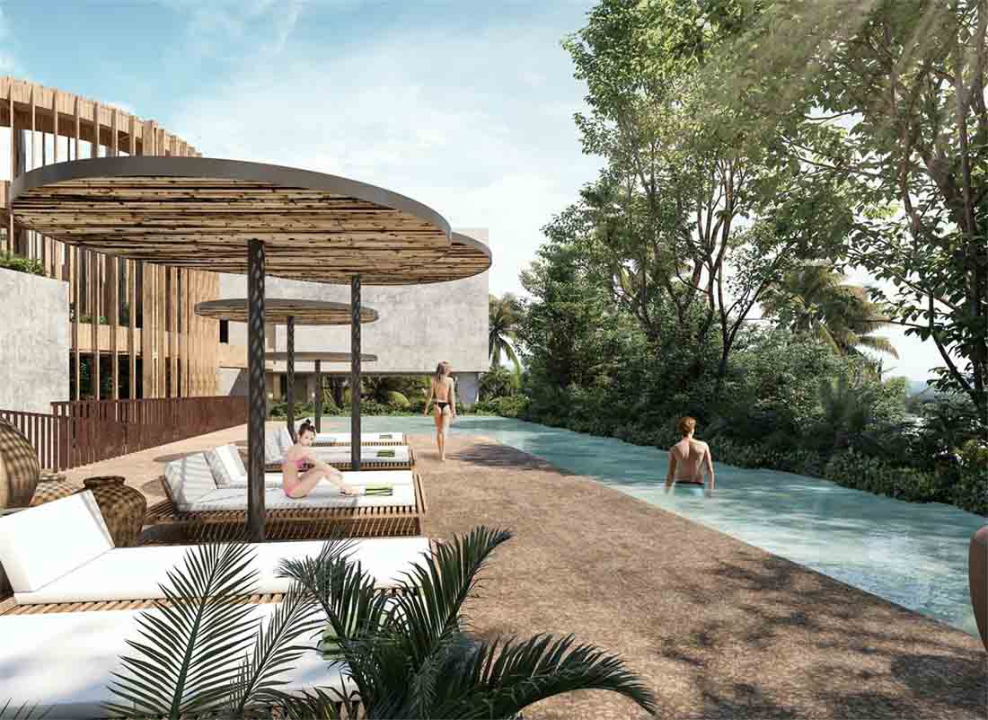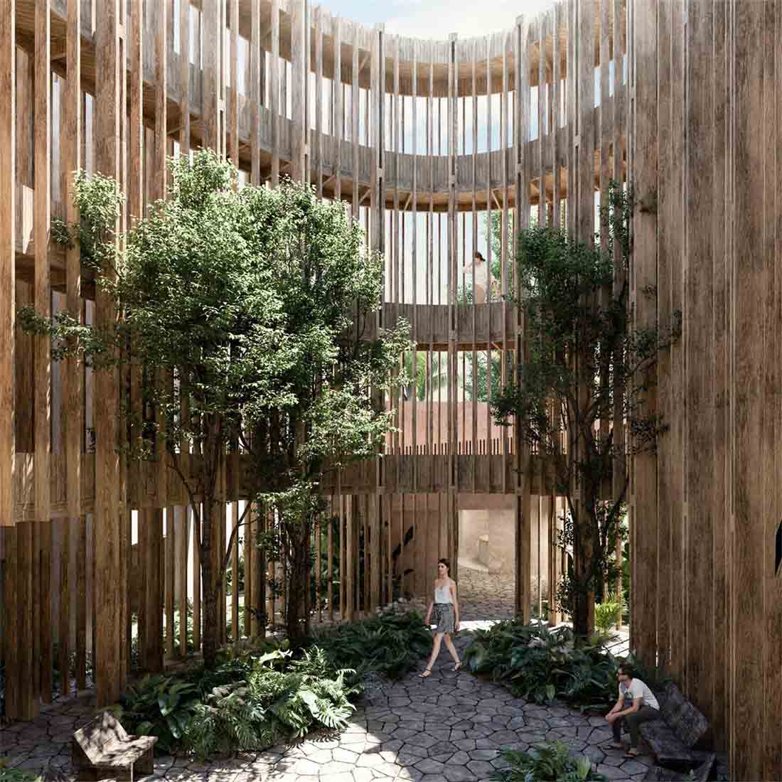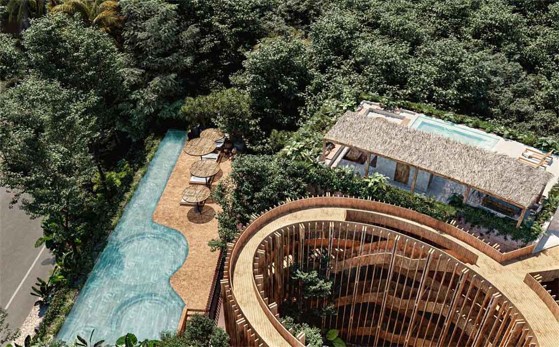 这个位于图鲁姆的丛林中的由19个豪华住宅组合而成的综合体,由一系列建筑和地形构造交织整合而成,其中的空间便是用户的日常生活伴侣。
