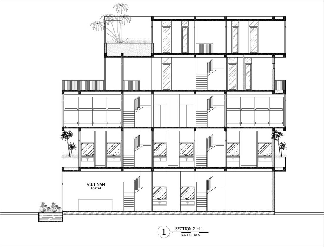 越南旅舍位于汉江市场的对面,这是整个岘港对所有居民和全世界的游客来说都最著名的景点。越南旅舍的设计采取了极简主义的方式,摒弃了一切复杂的元素以降低投资成本,同时依旧保障使用效率的最大化。