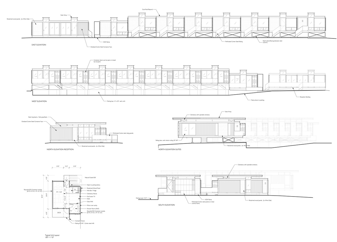 外部材料是本地采购的可回收的耐候钢和可回收的地板。酒厂的谷仓材料和可回收的农业结构被重新用作室内天花板和地板饰面。屋顶是太阳能,绿色屋顶和其他可持续性附件而设计的。