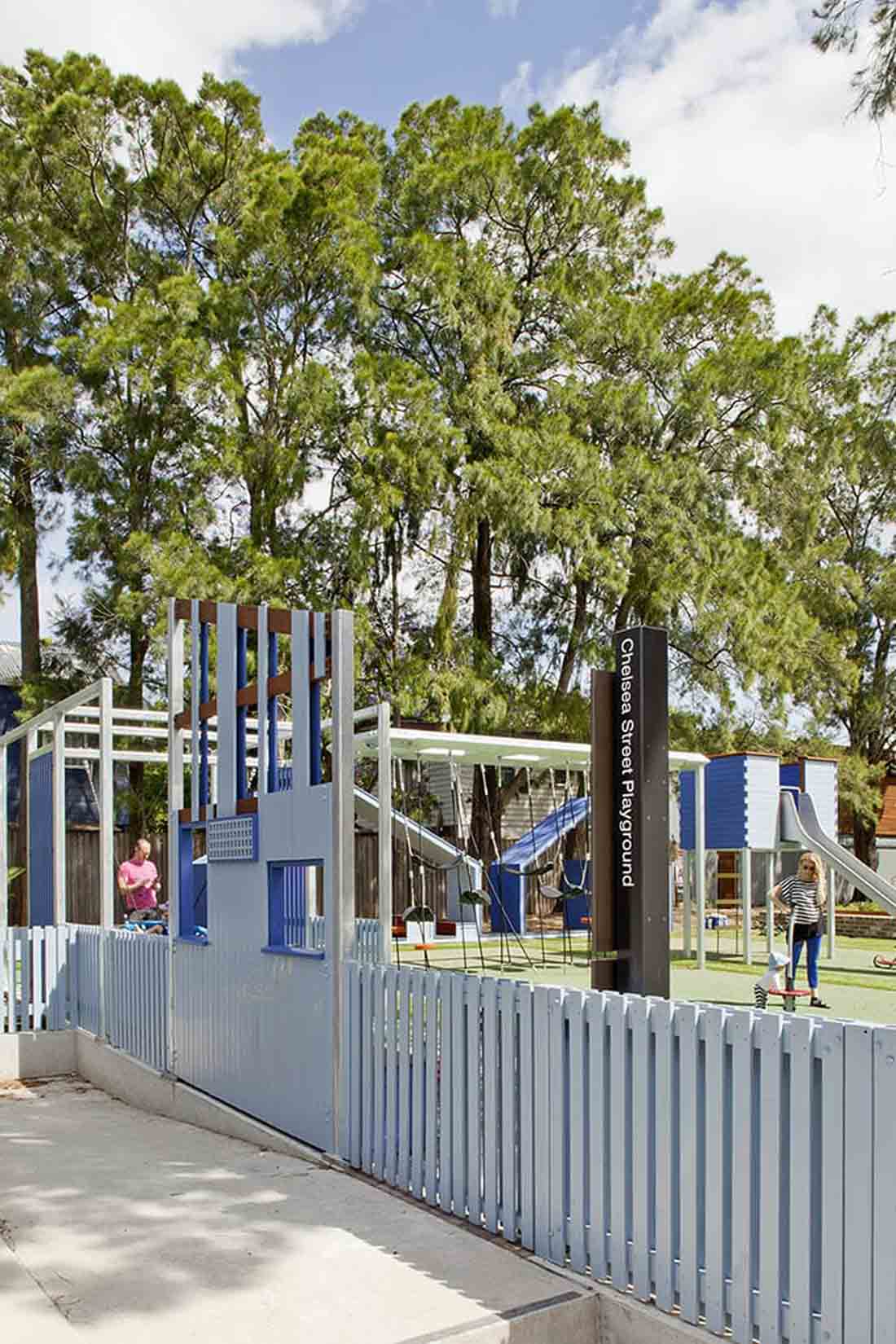 切尔西街游乐场是悉尼雷德芬密集城市社区的公共后院。1045平方米,大约相当于许多市郊后院的大小,容纳着多样的功能,同时也适用于许多家庭。这是一个公共游戏区,烧烤,蔬菜种植,宠物草坪和朋友聚会的地方。