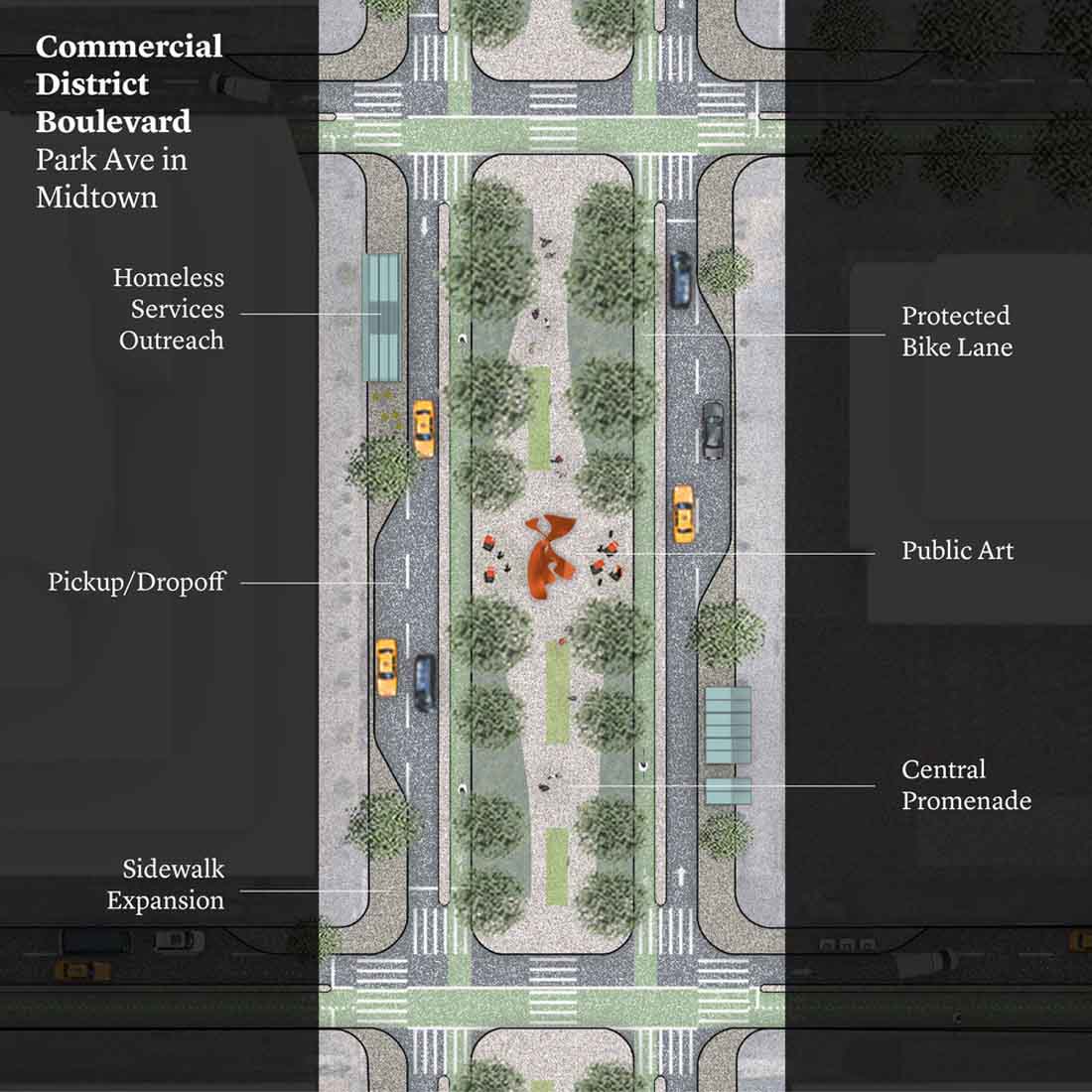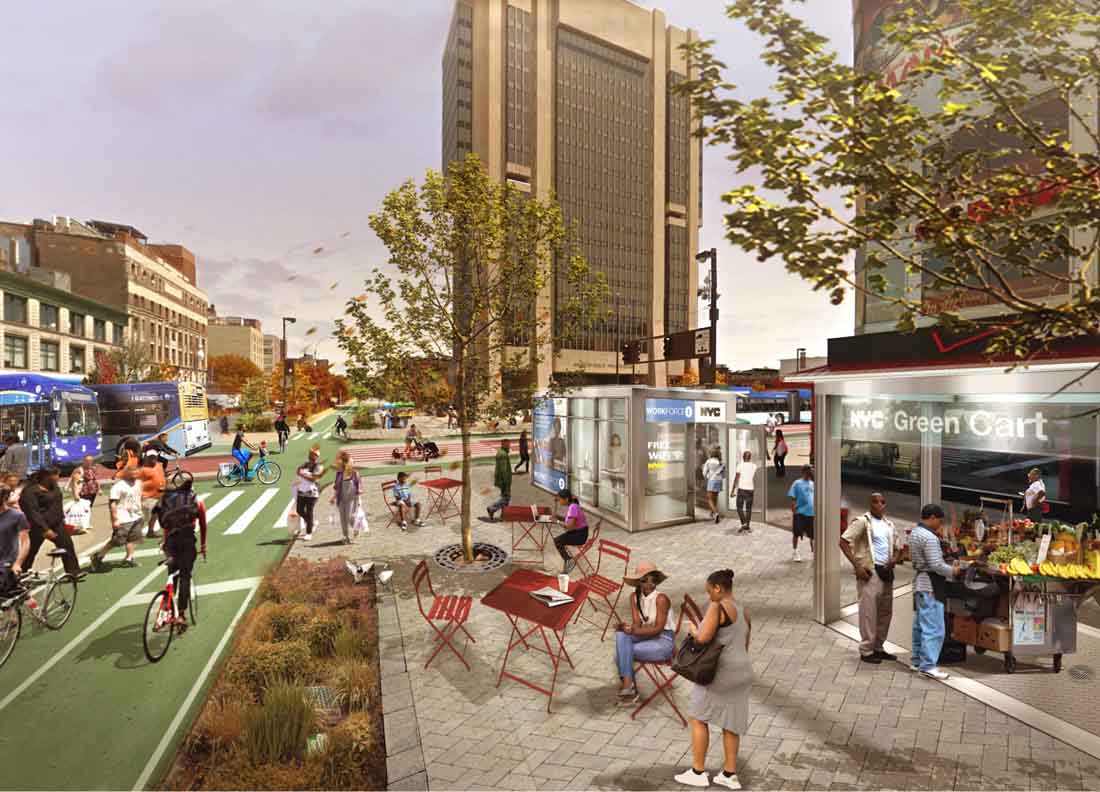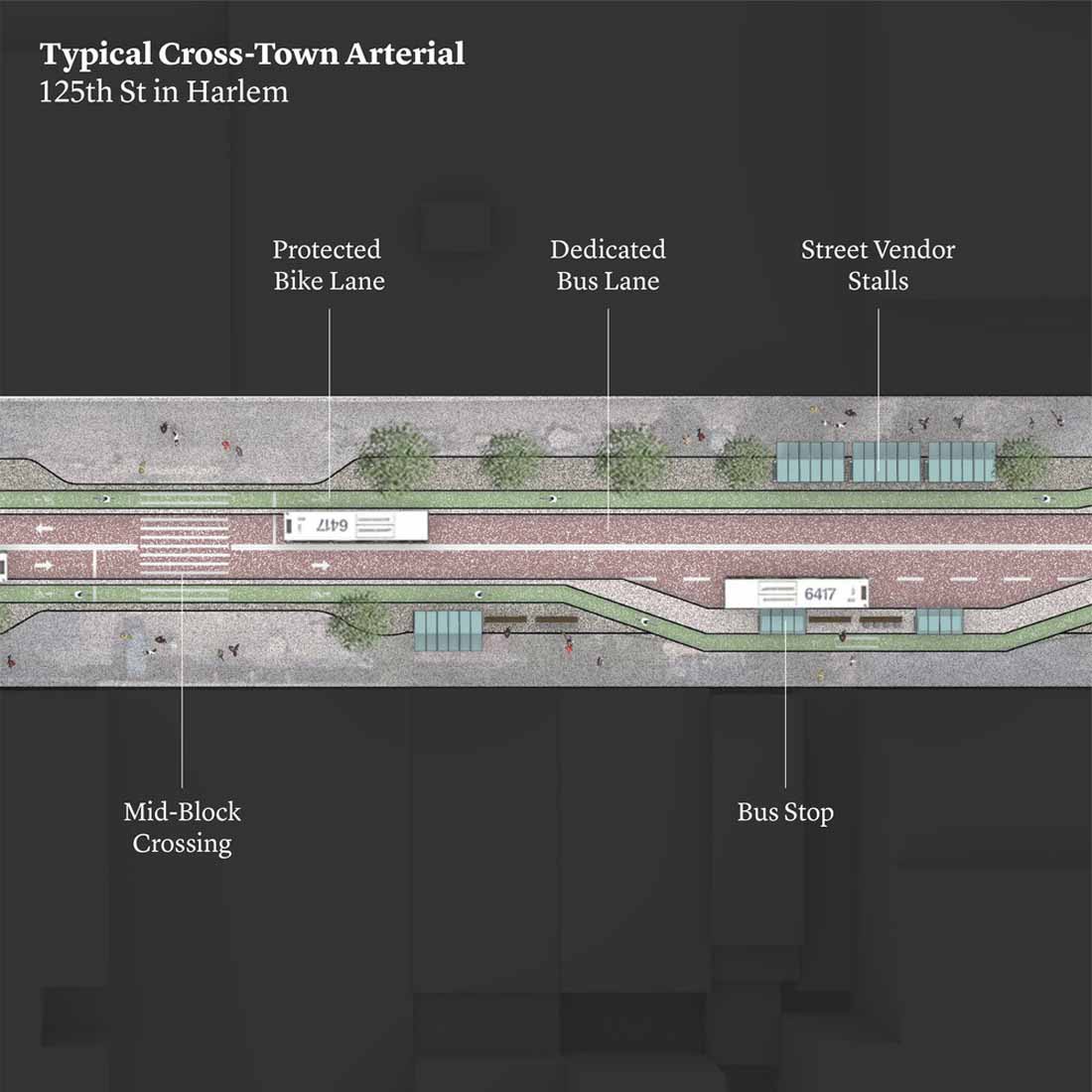 取消停车将为大型垃圾桶和更多的自行车道创造空间。额外的人行横道将使人们更容易安全地过马路。对于桥梁进入曼哈顿,尤其是曼哈顿桥坊七巷的汽车,新的布局将取代公交专用道,骑自行车者的路径和行人长廊四个车车道。三条车道将用于出租车和共享车辆。中间的车道会根据需求切换方向。一条扩大的绿道将与该岛西侧的一条绿道相连,使人们更容易在曼哈顿周边骑自行车,跑步和散步。