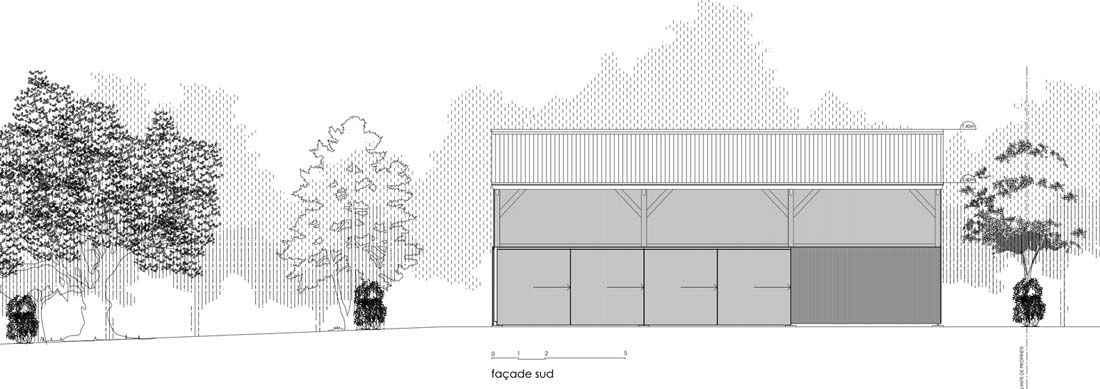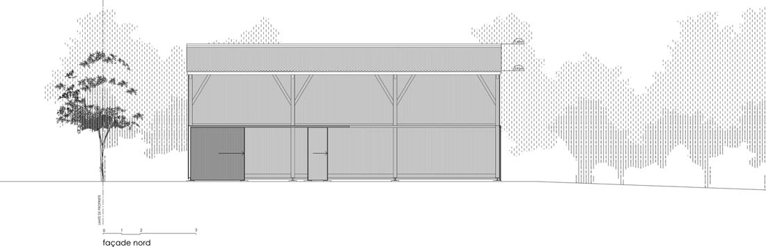 在第一层外壳里面,有一个有温度的小盒子,由预制的轻捷型构架组成。这个最小体量的单层居住区不在中心区域。相反地,两个嵌套的框架扩张,给了覆盖区域一个规划方向。