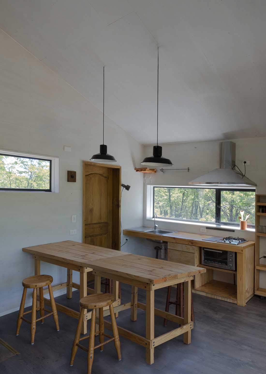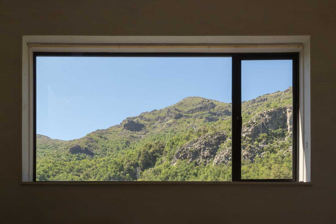 要保持下去,他必须在可居住性的范围内与他的环境相矛盾。这种在城市中部带来城市生活及其舒适感的矛盾需要内部空间的感知距离,而内部空间失去了木材的自然纹理,因此当它出来时,自然无处不在。它的辉煌和惊喜,集中在主要窗户之间的相互联系:人与自然之间的具体对话。