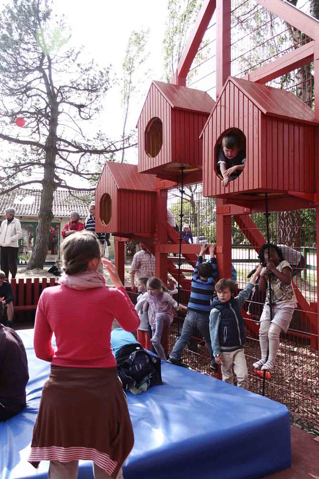 村落的房子向村庄广场方向开门,邀请每个人进入这个内部的超大主题空间。它适合有调理的学习和娱乐活动,也可作为心血来潮的玩所。新兴的公共空间在村落和学校之间建立了强有力的联系:通过补给每日能量,学校如发电机般加强着村落的“脉搏”,这反而有助于加强孩子作为积极有形的公民的自我形象 。