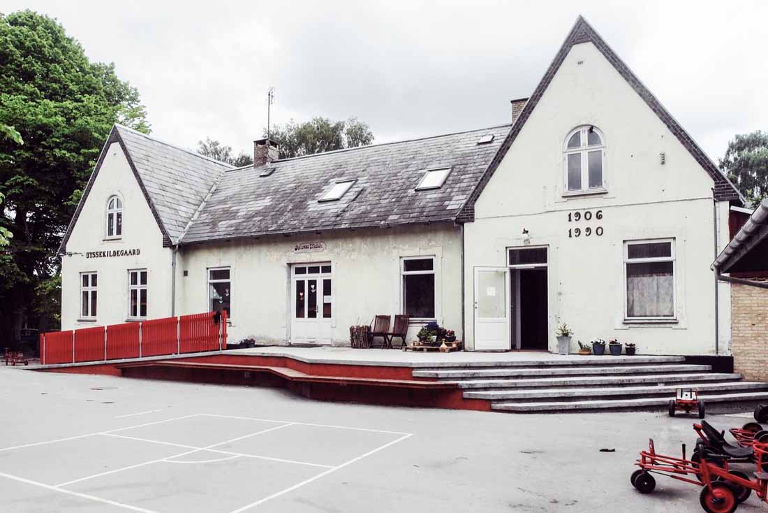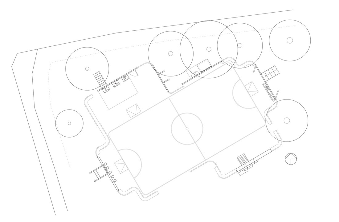 学校场地包括一个需要重新铺设的路面、改进进入其中一个建筑物的通道、作为停车场的前院的学校庭院,以及以加强其作为活动区的潜在发展。 前院已经变成一个村落广场,而庭院已经变成一个户外教室,设有一个提供有趣的连接坡道楼梯,这里同时可开办学校相关的活动和聚会。