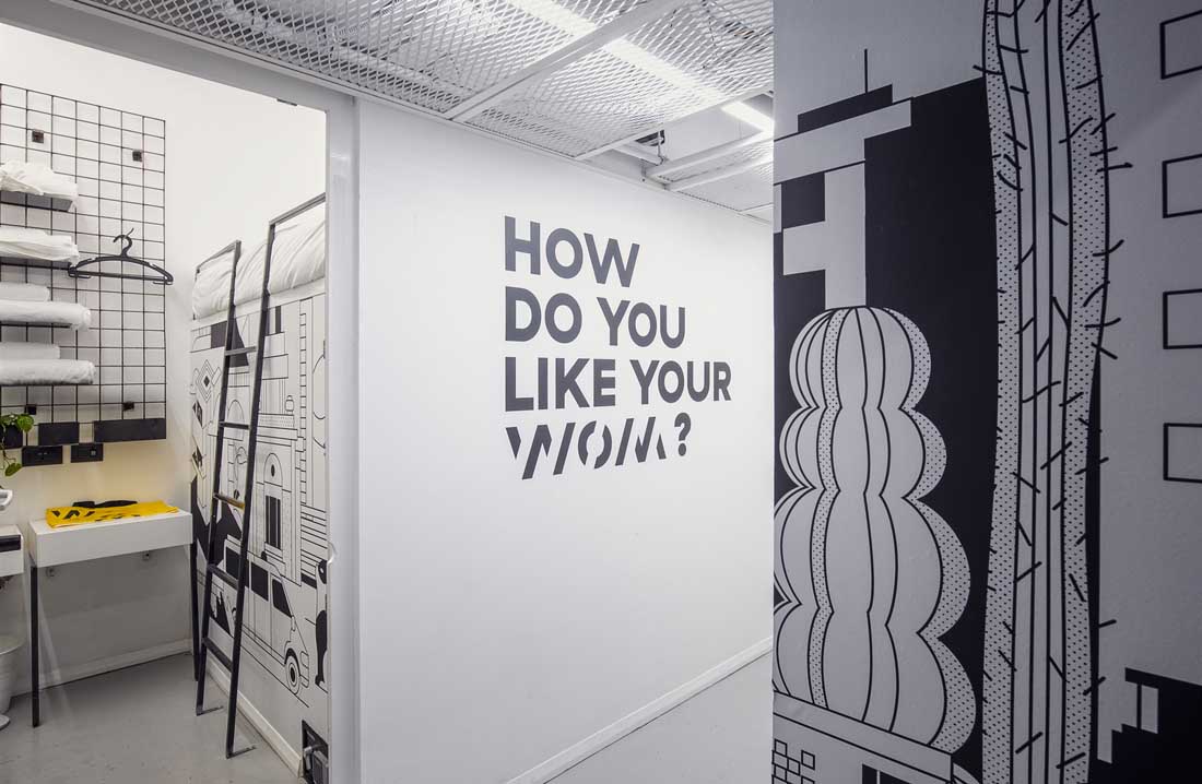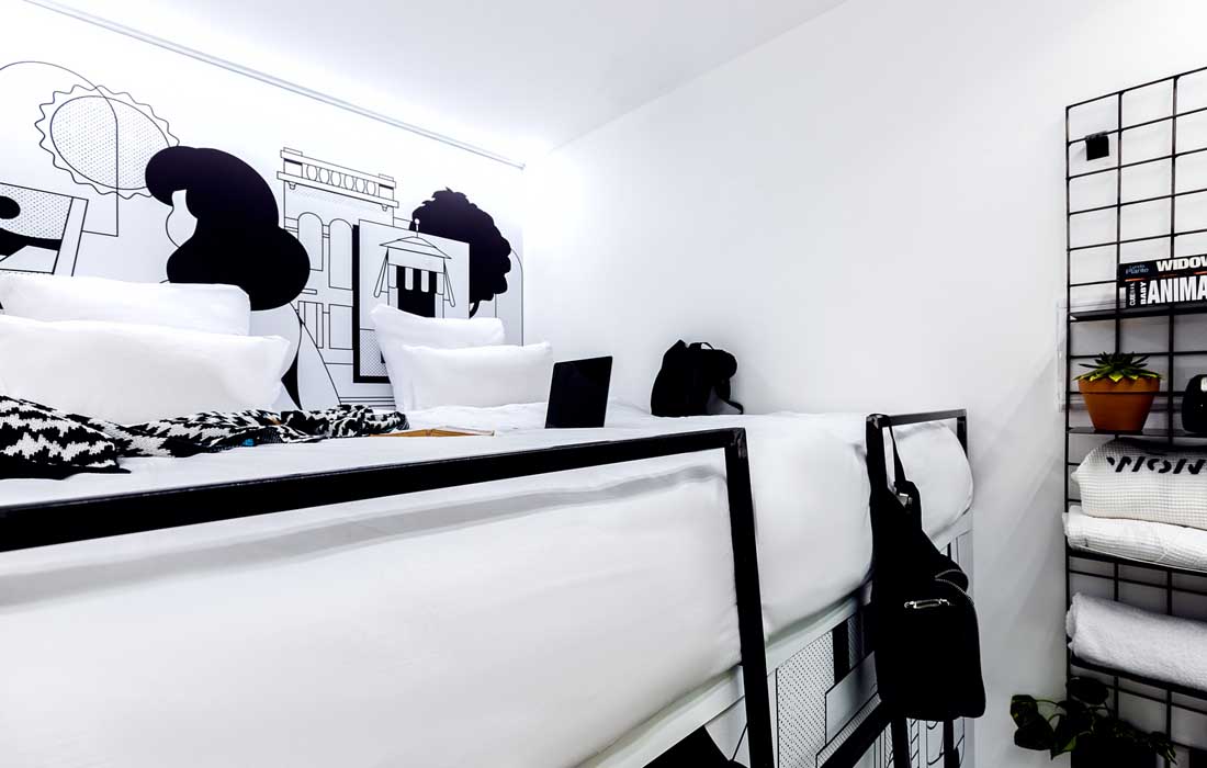 WOM Allenby分为三个房间类别,即单人房(1人),双人房(2人)和特大号房(2人)。酒店提供48个采用新颖时尚设计的客舱。每个吊舱均配有舒适的床、棉床单、书桌、水槽、空调、电视屏幕和音响系统、存储空间和私人保险箱。每两到三个房间在酒店的走廊上共用一个单人浴室。