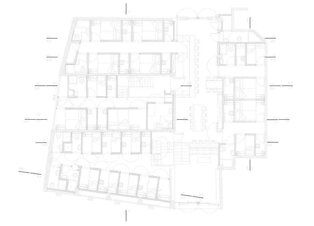 编后语:在密集城市中,空间有限和价格昂贵的前提下,设计师将建筑改造为适合当代社会、满足基本需求而设计的青旅,在青旅内背包客可以在每一个自己的房间、床位上能体验到酒店的感觉。更多关于旧楼改造、青旅设计、建筑设计的案例,请点击下面的拓展阅读进行跳转阅读。