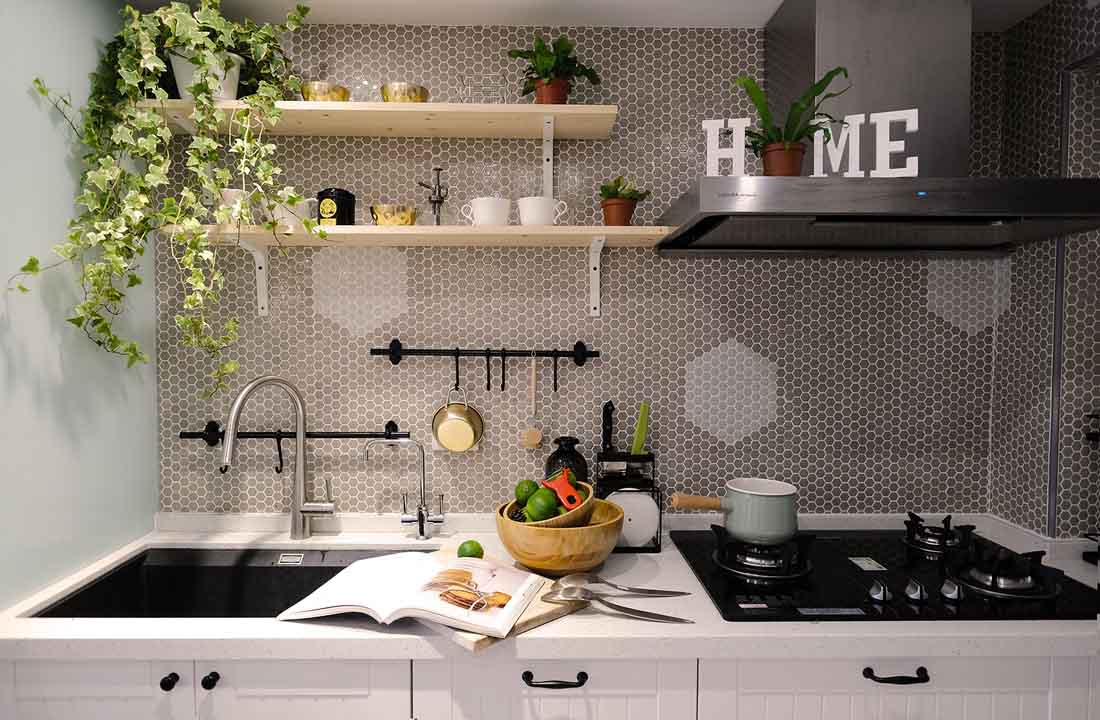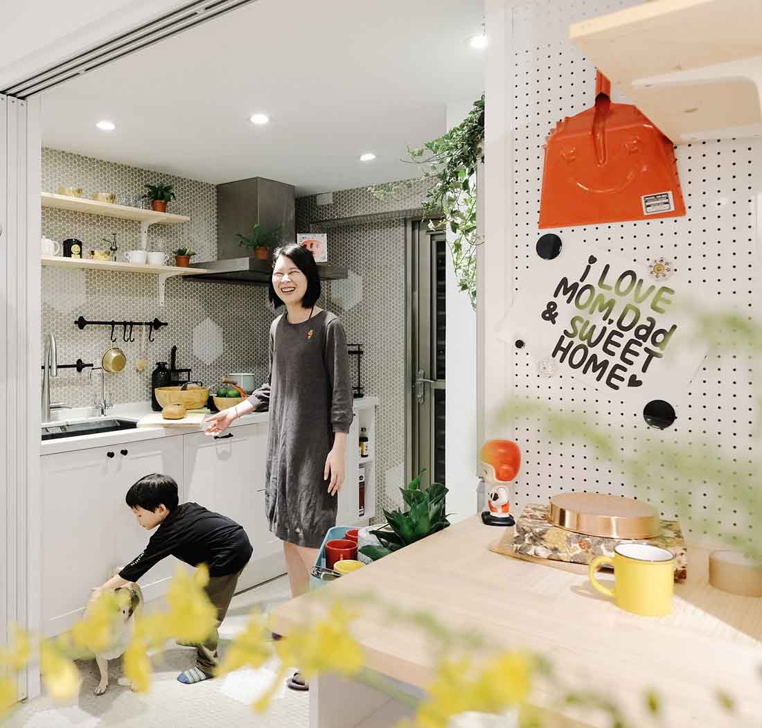还原外推的前阳台,纳入了绿意,生活也就更加惬意。而原先昏暗的厨房,开通墙面改为玻璃拉门,让整个视野通透明亮,料理时也可兼顾小朋友的活动,随时掌握状况。设计师将瓦斯炉移回厨房,完整了厨房的机能,并添加业主最爱的小花砖与乡村风元素;一改没有下厨习惯的妈妈,开始了每天替儿子料理的厨娘生活,再也不用担心煮饭油烟味会影响到衣物。