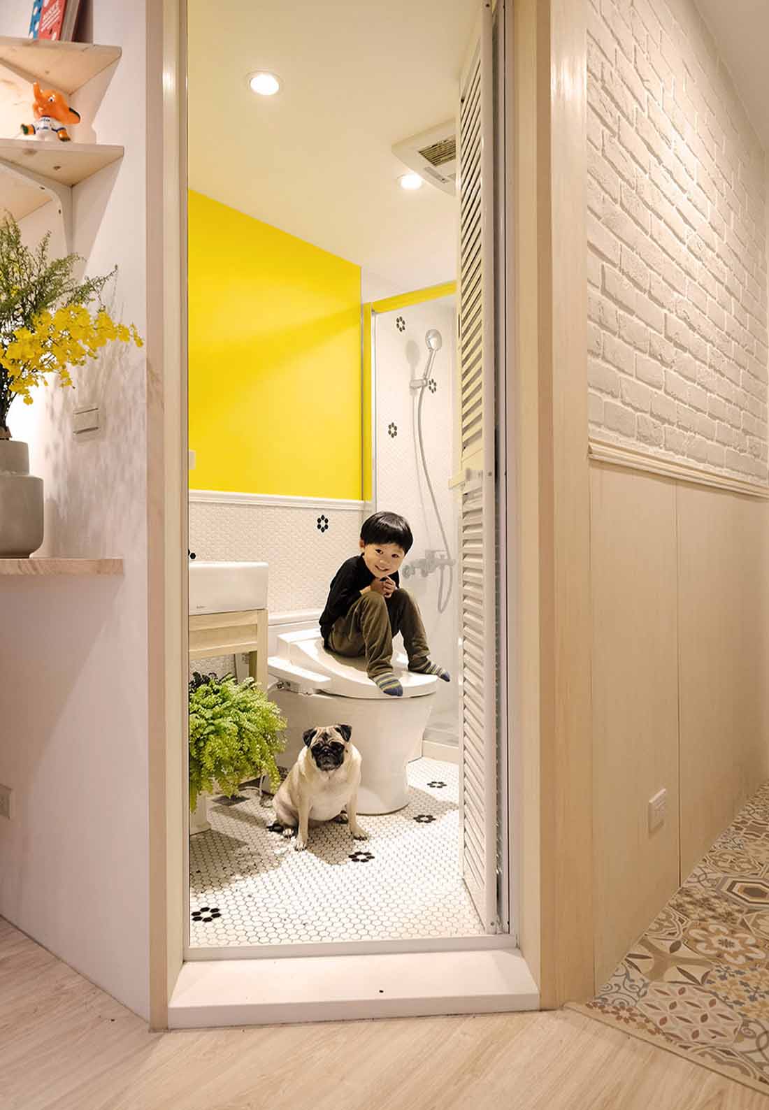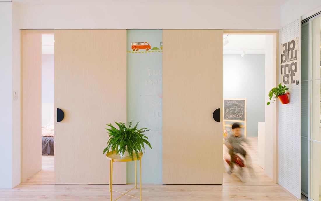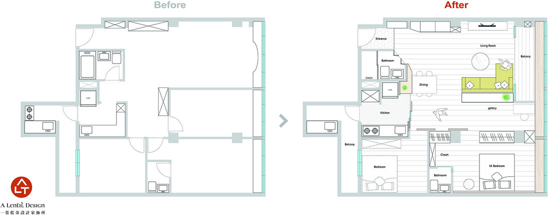 这间位于台北精华区的40年老宅,家中长辈几年前曾协助全室装修,却因长辈的规划与居住者需求不符,使得屋主后续生活常感到困扰与不便。夫妻俩考量许久,决定送给即将上幼稚园的儿子一份礼物 :「一个可以在这里快乐成长、舒适生活的家。」