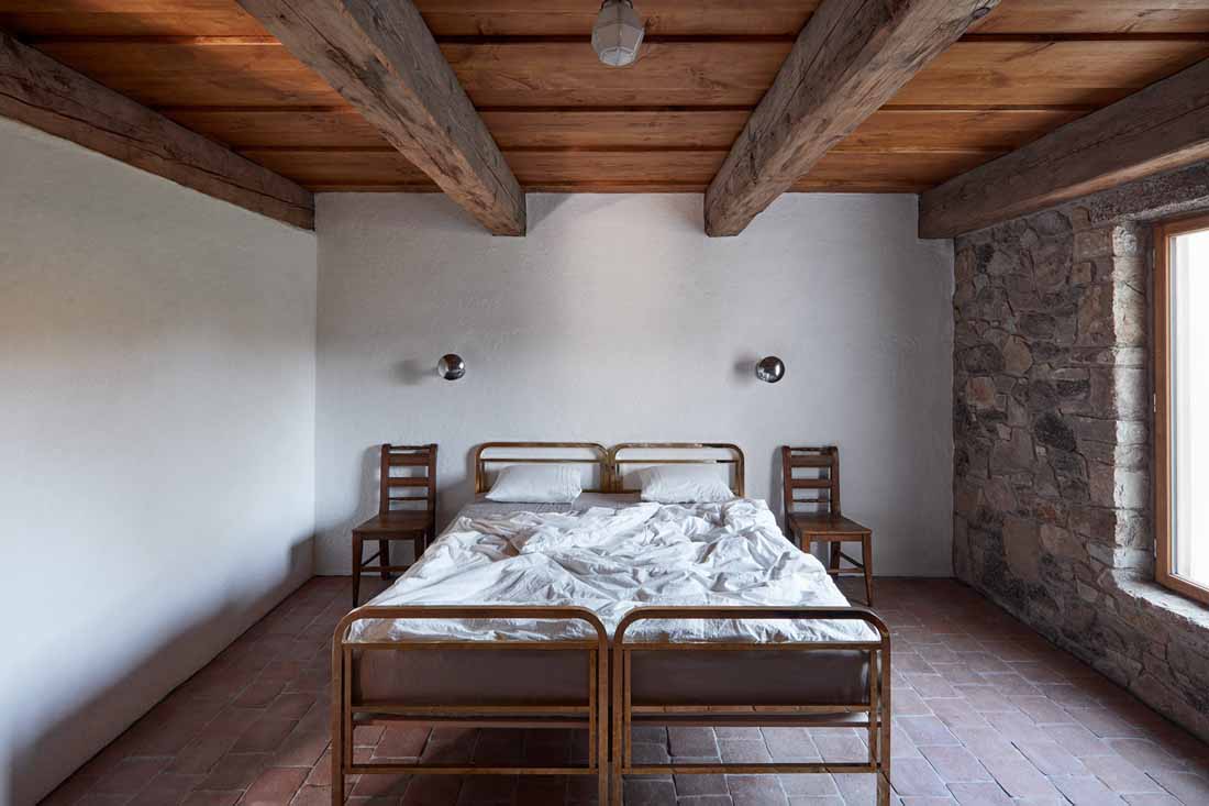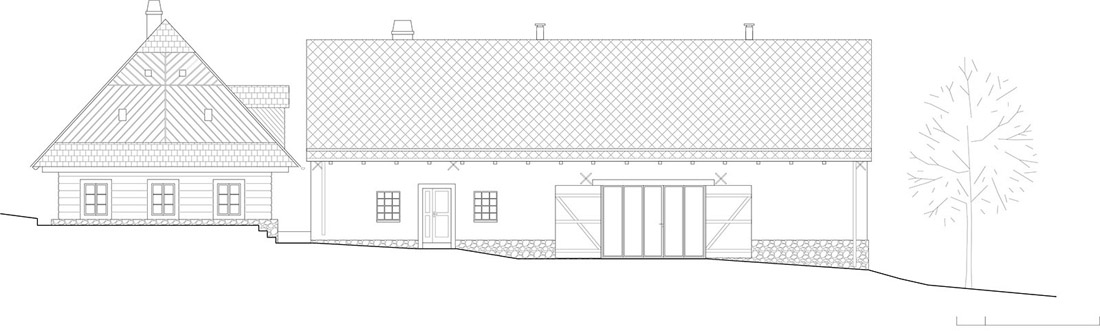 在该项目中,建筑师遵循原本的建筑逻辑和传统建造技术,试图借此找到上述问题的答案。建筑师希望实现一种自然的氛围,而不是精准地模仿。因此,在设计初期手工材料的使用就成了项目的重要部分,木材、石材和泥土带给人以原始而又稚拙的感觉。