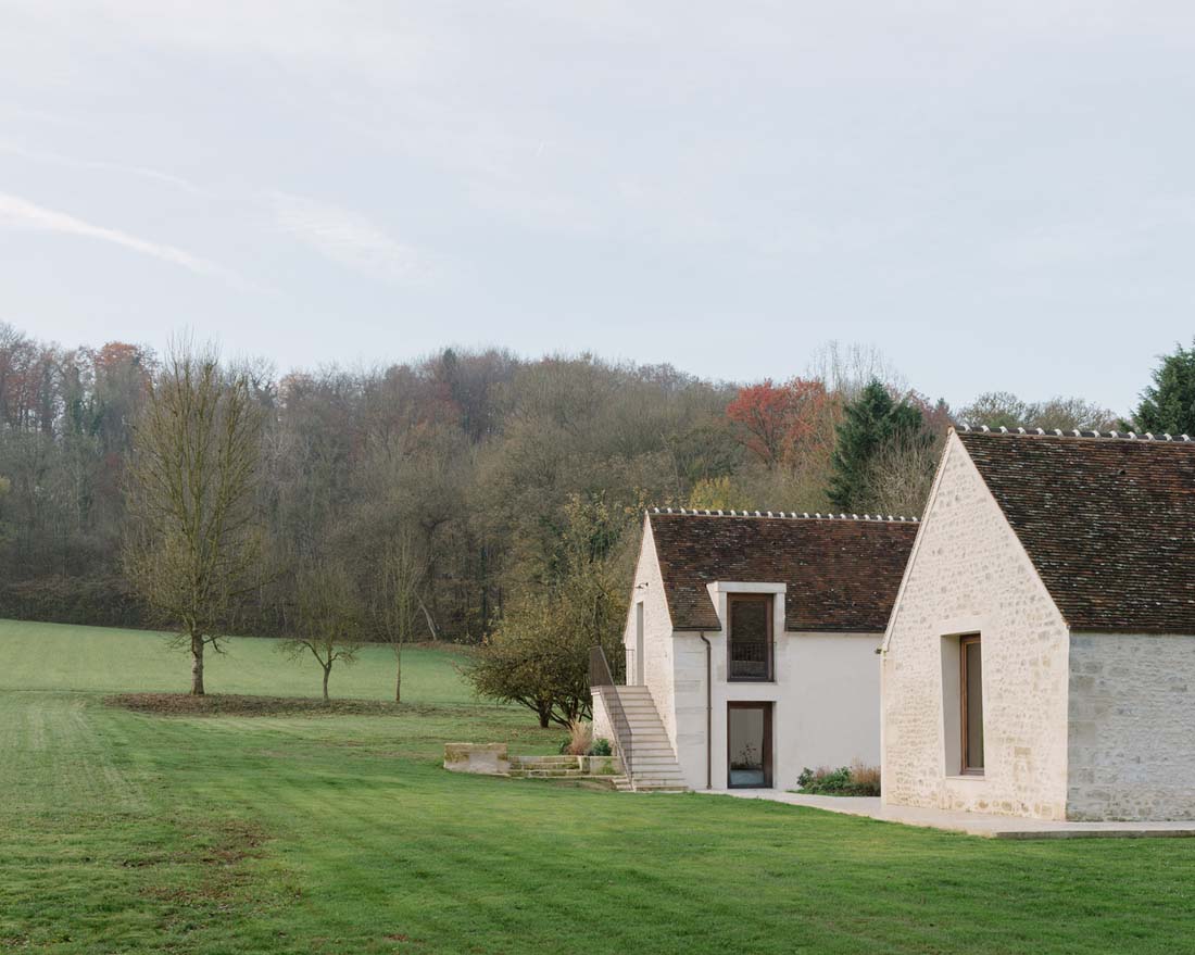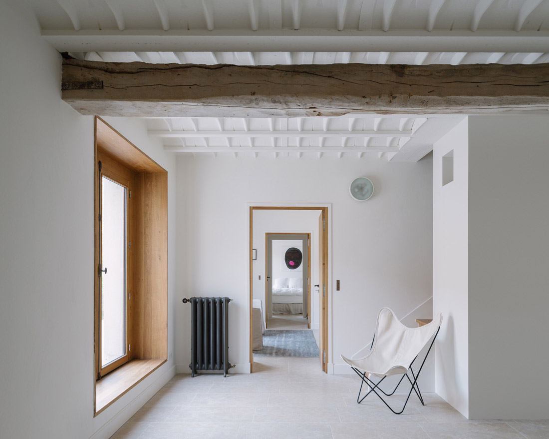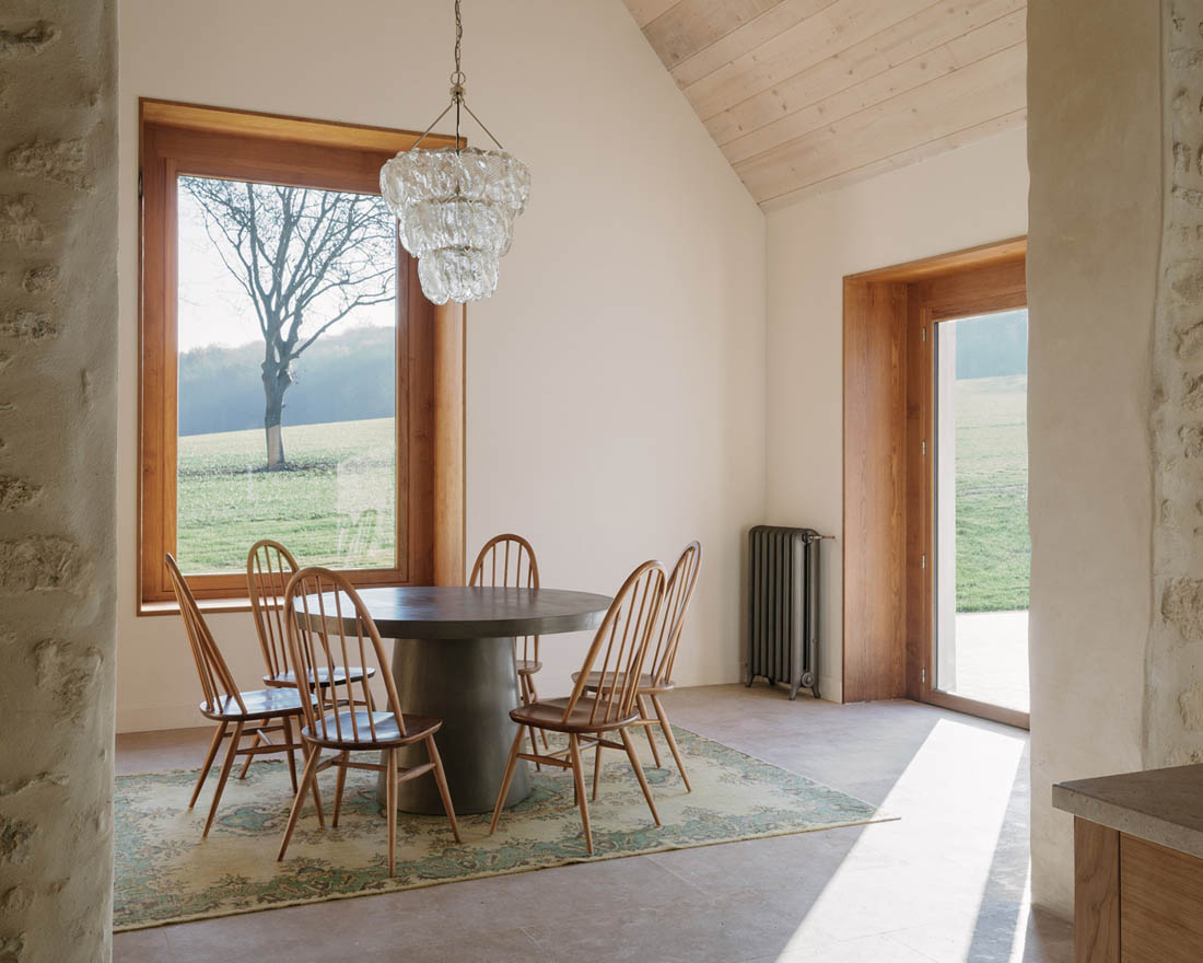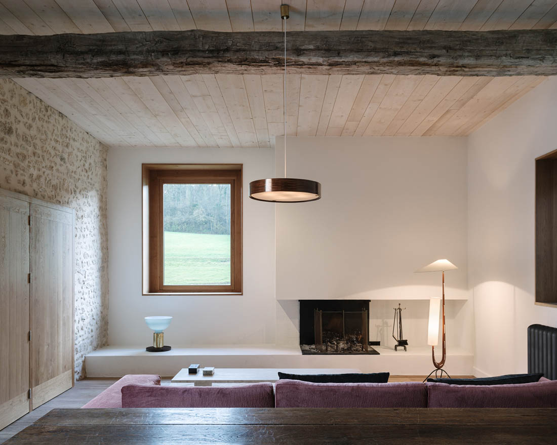 首层空间被抬升至一个新的庭院之上,房间则围绕在庭院的周围。巨大的木制窗框将如画的风景引入每个房间。设计师选择性地保留了建筑中既有的结构,使其成为新起居空间的一部分。原本陈旧的农舍自此以全新的姿态融入到当地的景观之中。
