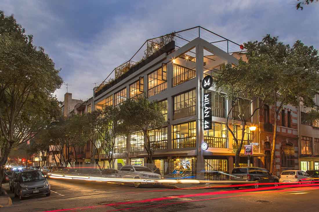 建筑位于墨西哥城 Milán 44 号,是一个城市再生项目。建筑师将原有一幢属于汽车部件零售商店的四层仓库改造为城市市场。项目激活了一个新的区域,将两侧完全不同的社群连接在一起。项目一侧是象征着经济蓬勃发展的 Paseo de la Reforma 区域,另一侧是当地嬉皮士文化发展的中心 Colonia Roma Norte。自 1985 年的地震以来,这个地处正处在衰落后缓慢重建的过程。位于城市中心,历史悠久,配备了新的基础设施后,项目拥有了城市未来发展的必备条件。