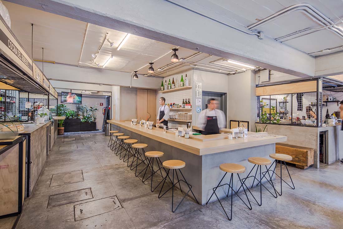 建筑的左侧立面保留了原始的钢筋混凝土结构,其中两层空间布置了市场、餐厅和私人的商店,包括理发店和瑜伽室。新的方案从本质上来说是城市空间的延展,原本的仓储空间已经摇身一变,脱去了它的封闭内向的外立面,变得开放,迎接着城市中的居民和客人。