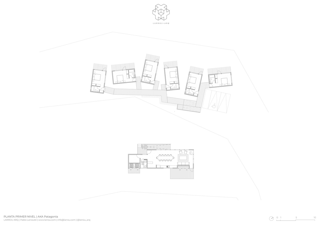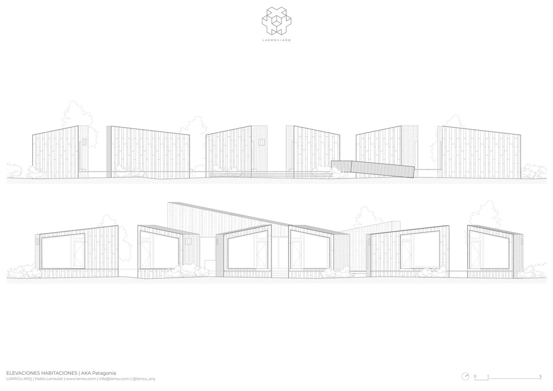 该项目位于山谷顶部的纳塔莱斯港(Puerto Natales),位于缓坡的尽头,可以欣赏到全景,在这里,高耸的山脊、火山、山脉和冰川打破了地平线。该项目包括六个模块(带浴室的双人间)和一个休闲,开会和做饭的公用模块。
