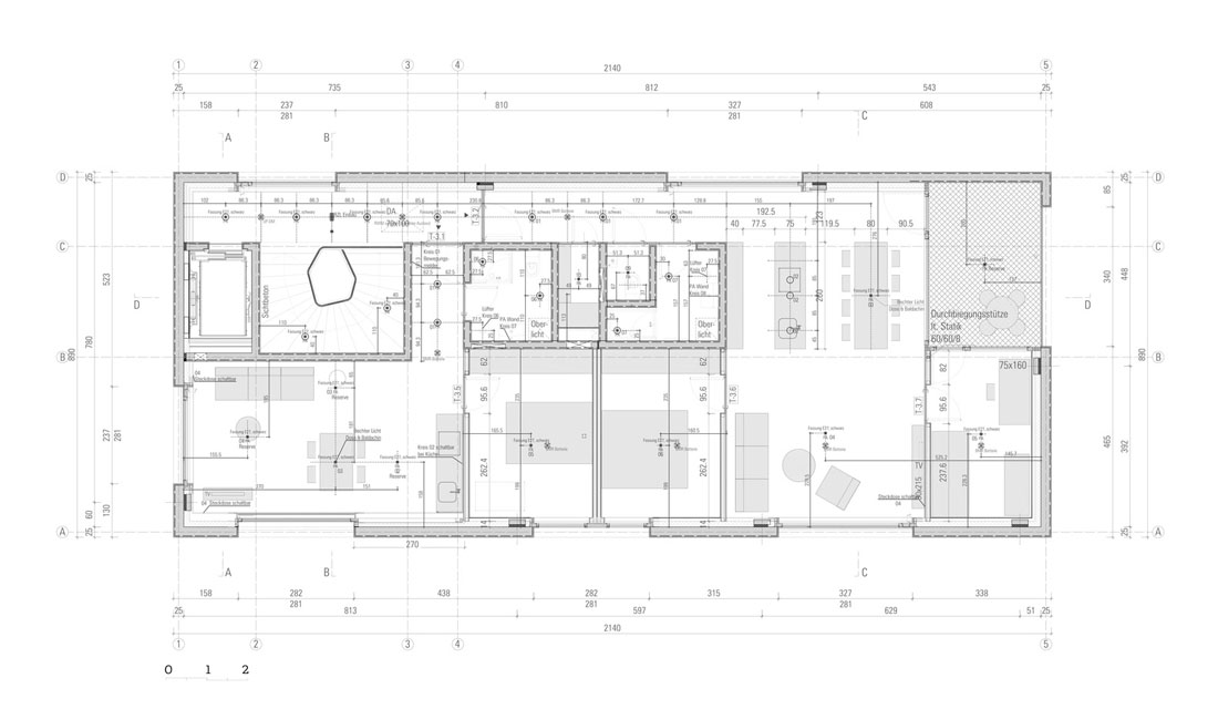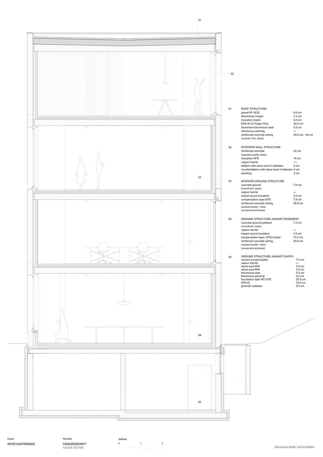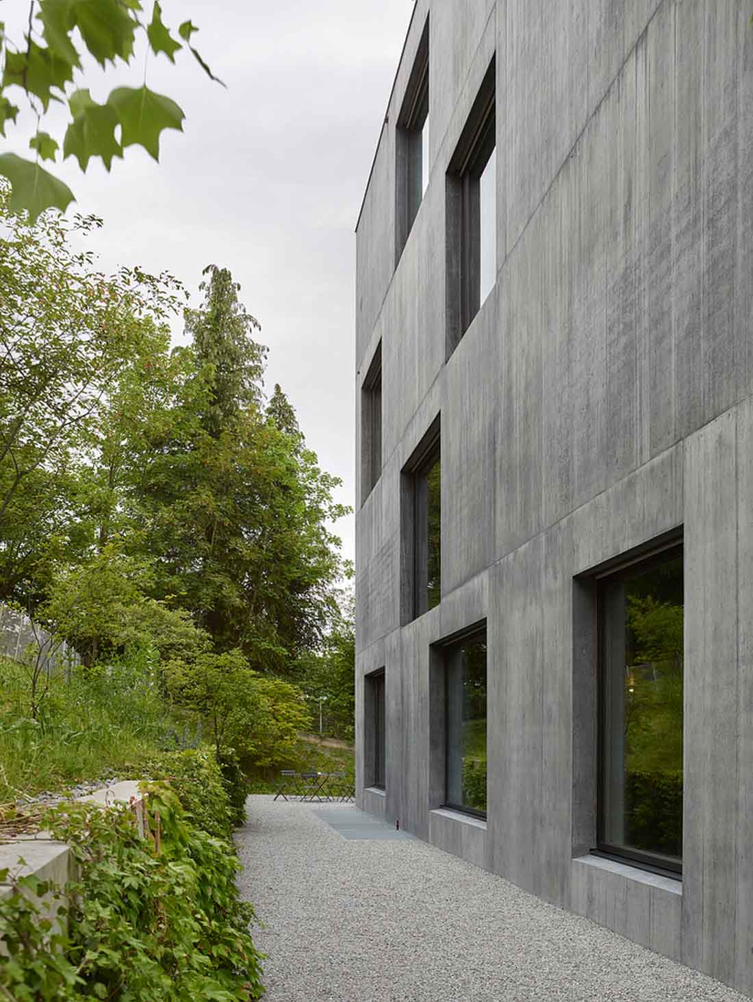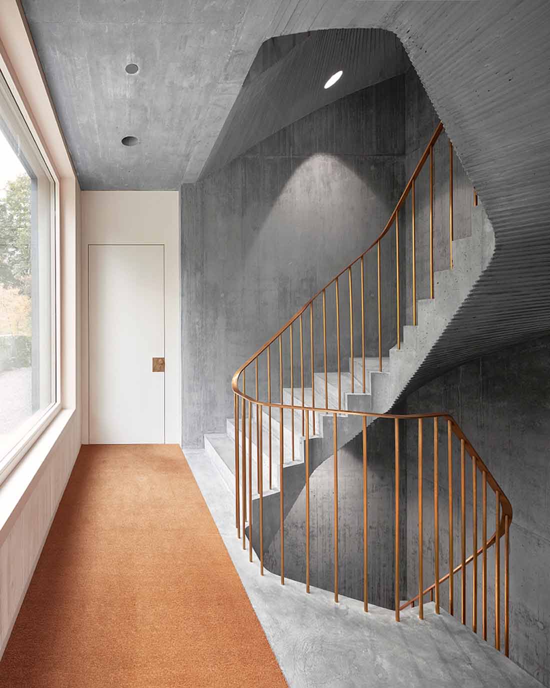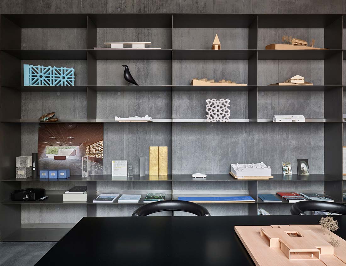 该建筑物完全是由混凝土建成的,地板、天花板、墙壁和屋顶均使用相同的材料。深色混凝土在此项目中展现了其充分的雕塑性和气氛性潜力。精巧的浇筑与保持未经处理的醒目表面,都象征着这种材料的工作过程和原始力量感。