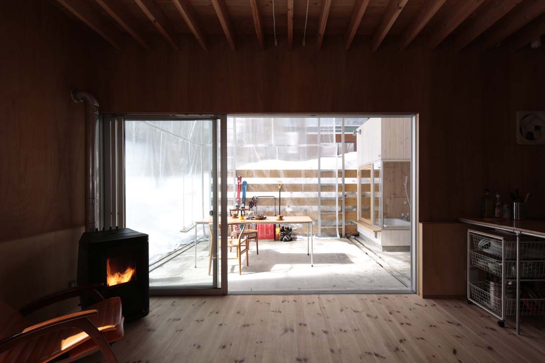 这座度假村在白马村建造,这里因其国际化的雪景旅游而出名。在这一区域,许多房屋的首层都设置在离地一米高的位置,因为积雪深度往往可以达到这个高度。因此,这些房屋在视觉上和功能是与周边自然环境是分离的。