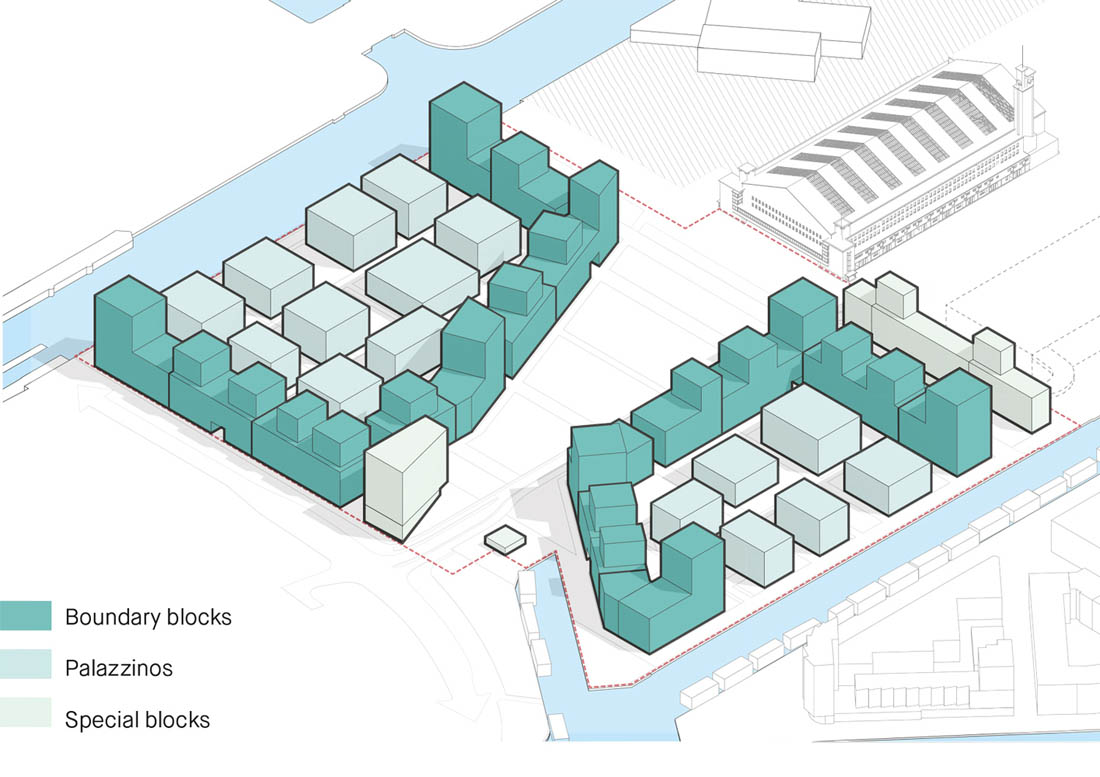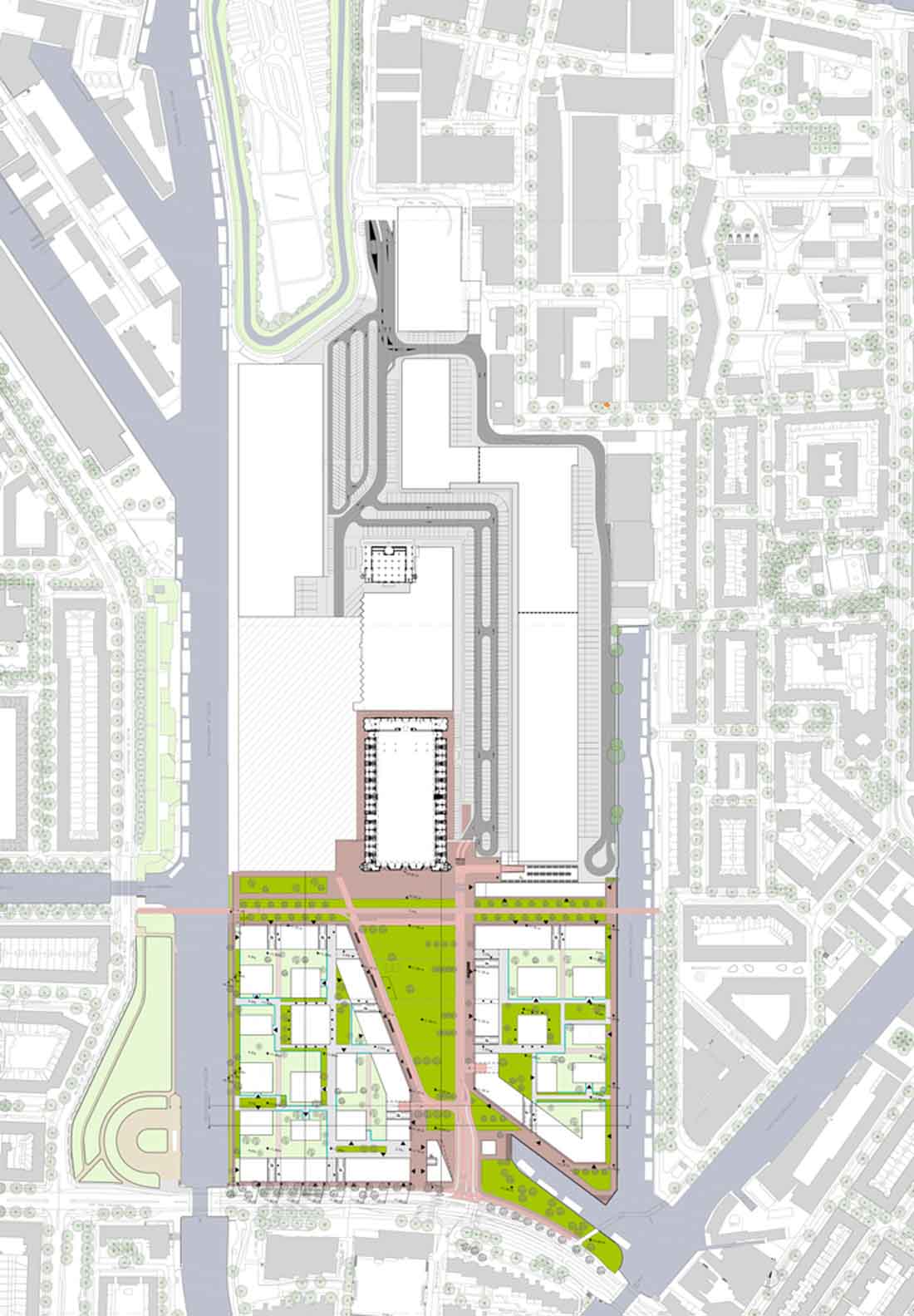 食品中心的地形是由两条运河围绕的长码头组成,设计师通过开发一系列在70年代被填平和开垦的港口盆地,创造更新且更有效的结构组织。作为这次重组的一部分,食品中心将减半,其中很大一部分转移至码头的北端。
