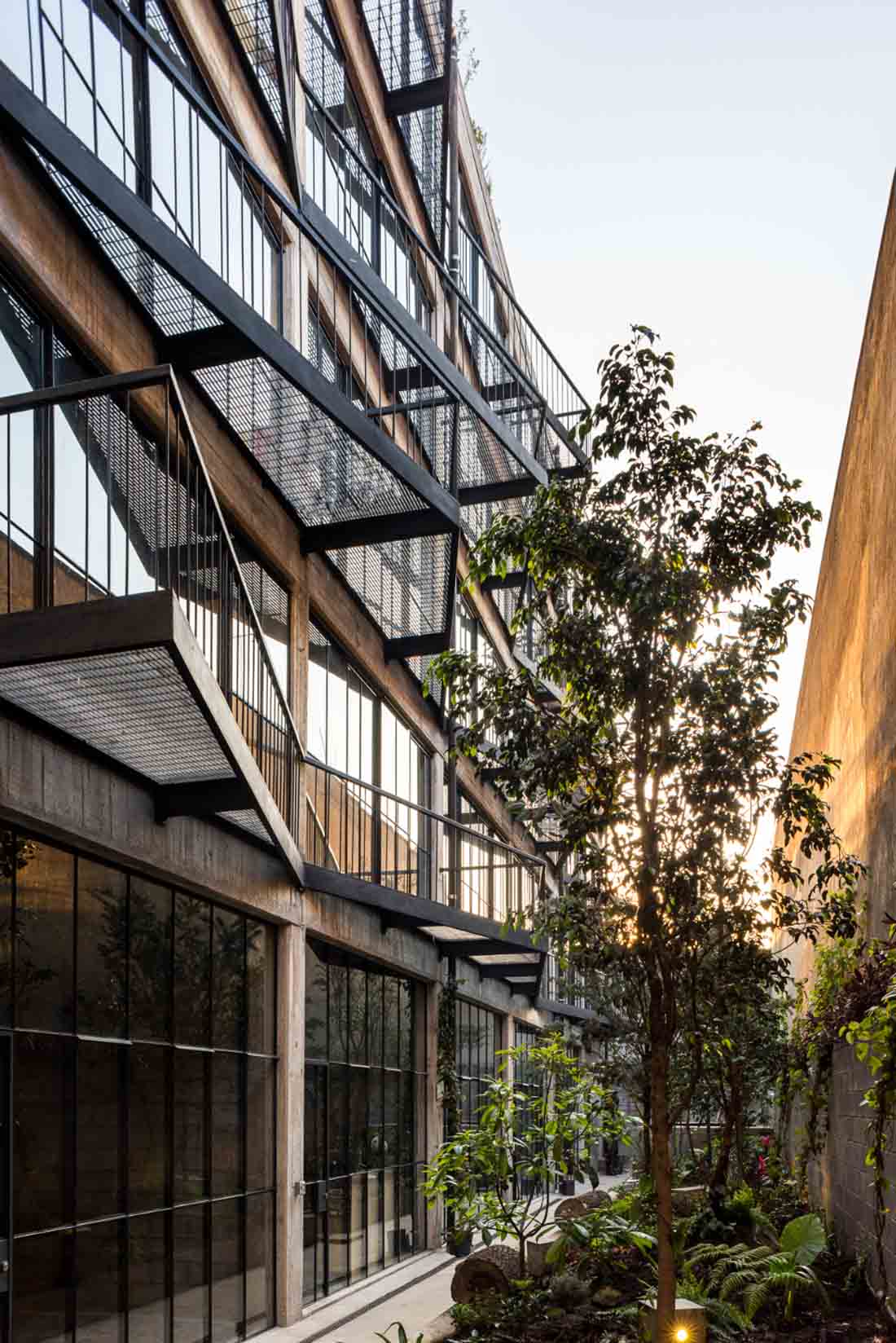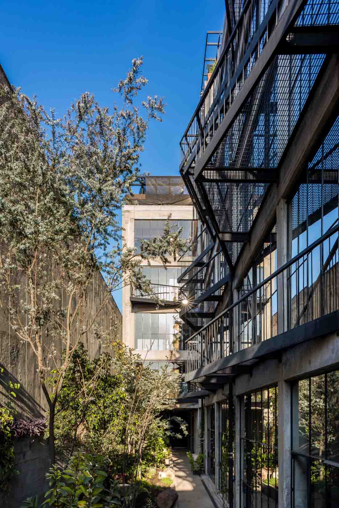 旧庭院下面设置水处理设备,用来清理污水,同时可以循环再利用所有使用过的水。屋顶花园创造了一种公园的氛围,提升了整栋建筑的空气质量。