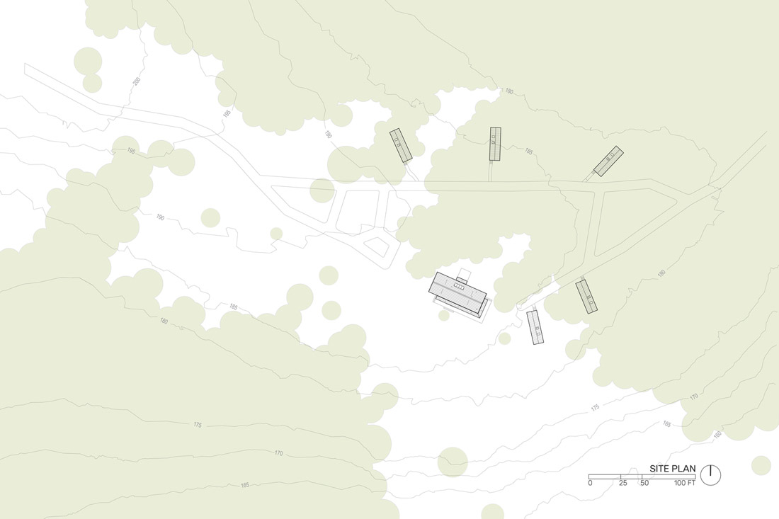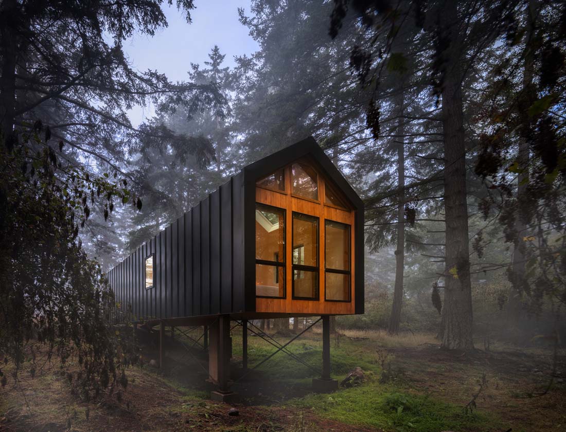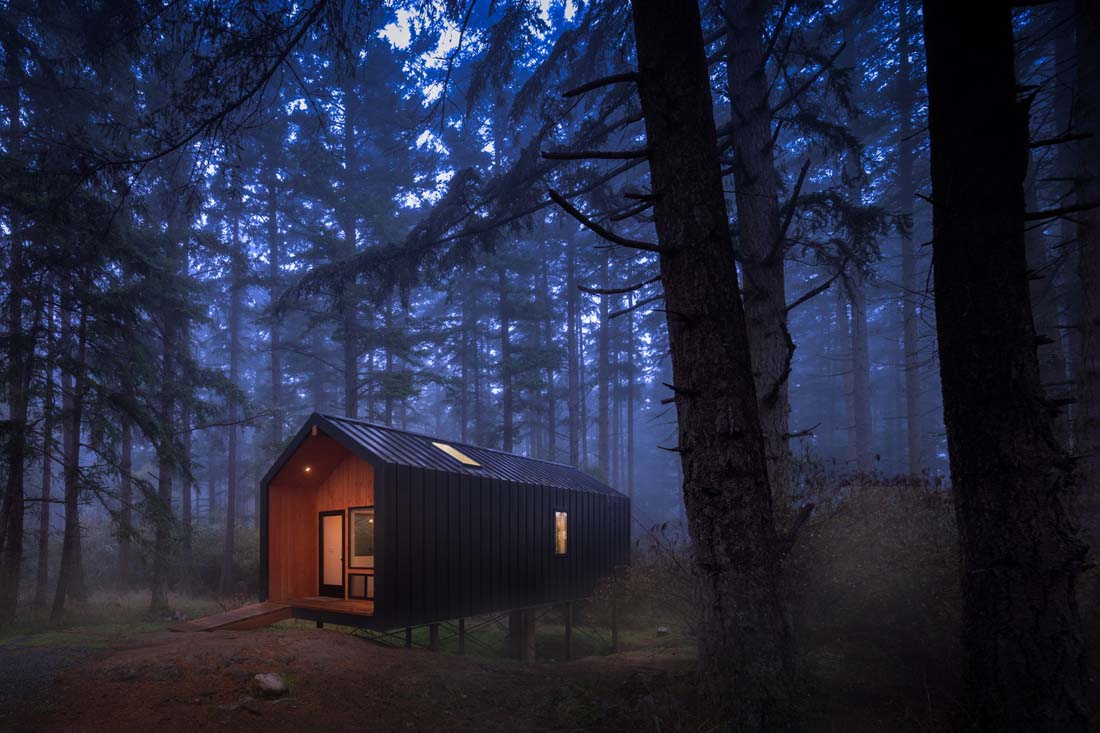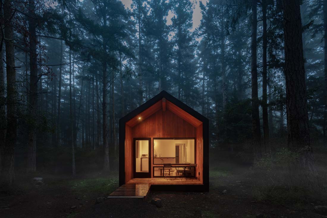客栈、农场和家庭住宅实现了住户的长期梦想,他们希望离开城市,过上更简单的生活,融入大自然。设计师将五间小木屋放置在高耸的松树之中,以确保客人的独处和私密性。客舱在形式上完全相同,具有精致的斯堪的纳维亚风格的极简主义,但每间客舱均采用定制的内部饰面和周围景观的框架景象,带来截然不同的感觉。