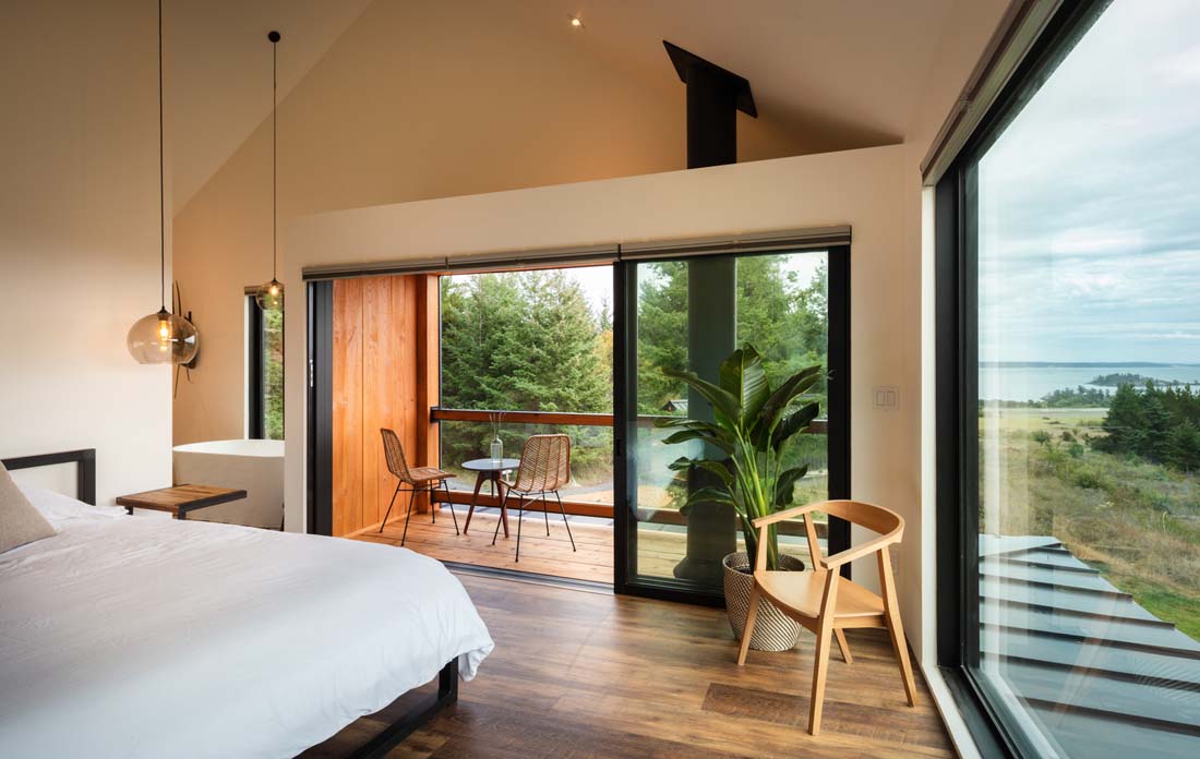 华盛顿港的盐湖农场坐落在华盛顿圣胡安岛的原始海岸线附近,圣胡安岛是一个只能通过海上或空中进入的小岛,是时尚的精品酒店和占地162英亩的乡村度假胜地,坐落在星期五港口。该项目包括五个小客舱和一个供客户及其两个孩子使用的两层楼房屋。