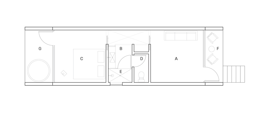 主房屋位于酒店的中央,共享舱室的简约,第二层是业主的住所,第一层是客人的公共聚会场所。主屋拥有高高的天花板,开放式的平面图和可通往宽敞甲板的双开门,是放松休息的理想之地。