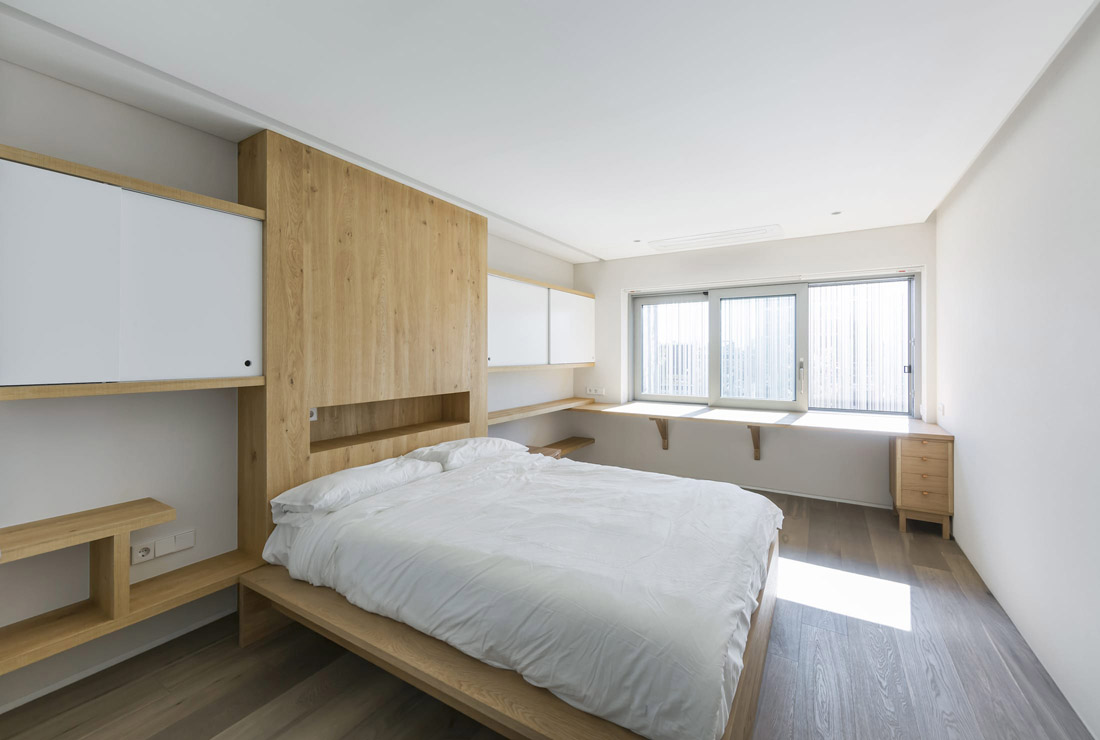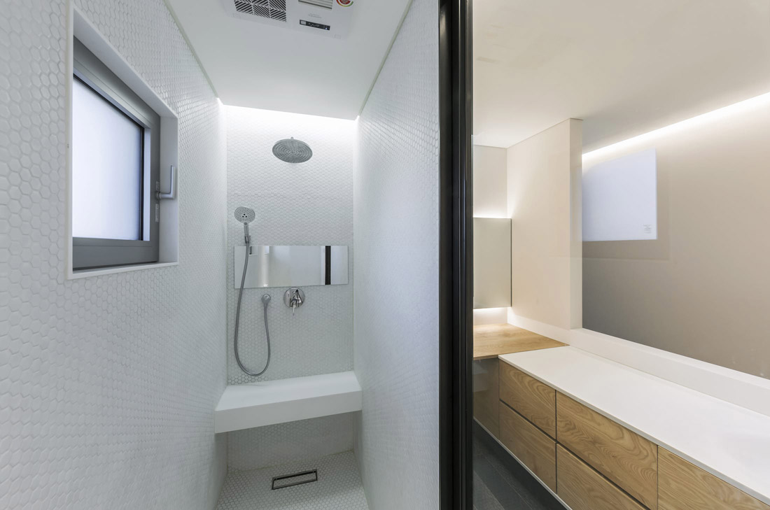“Steel Grove”不仅解决了住宅的功能性问题,还试图与附近的街道建立一种新型的关系。当太阳升起时,“Steel Grove”就会脱颖而出,充当立面的角色;当你进入房间时,直射的太阳光被“Steel Grove”巧妙地散射;当太阳下山时,房间里的光线透过“Steel Grove”,形成与白天不同的立面形式。该立面的变化为街道创造了不同的环境,设计师试图通过这样来诠释房子和周边之间的关系。