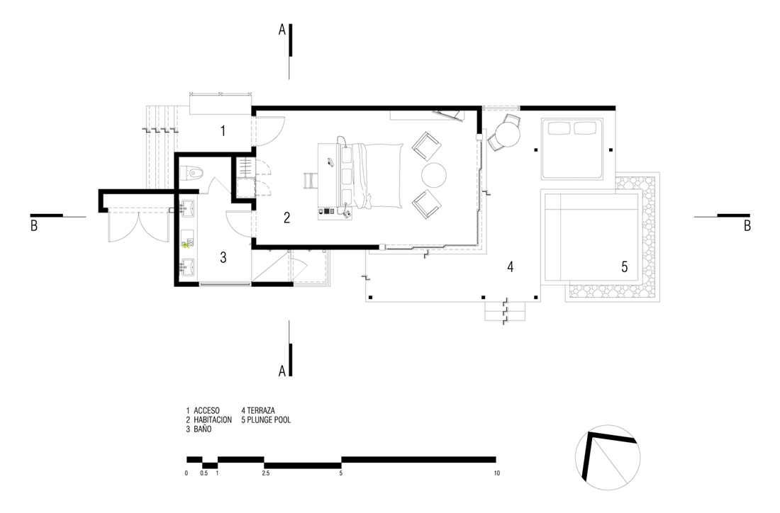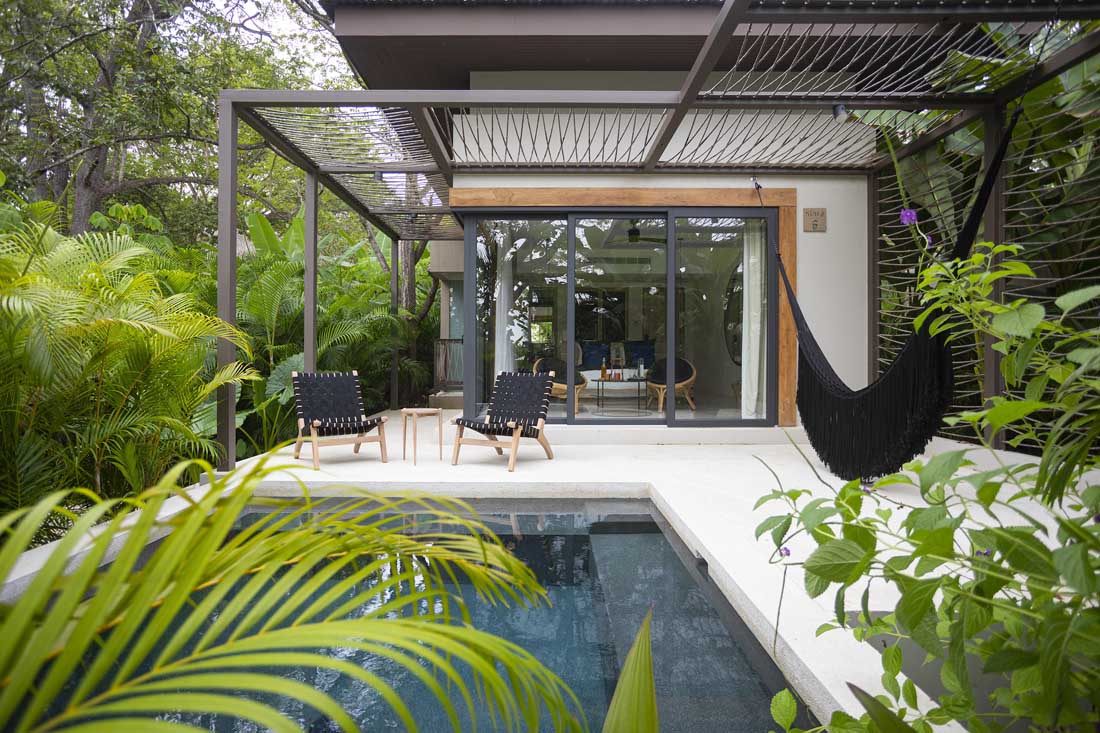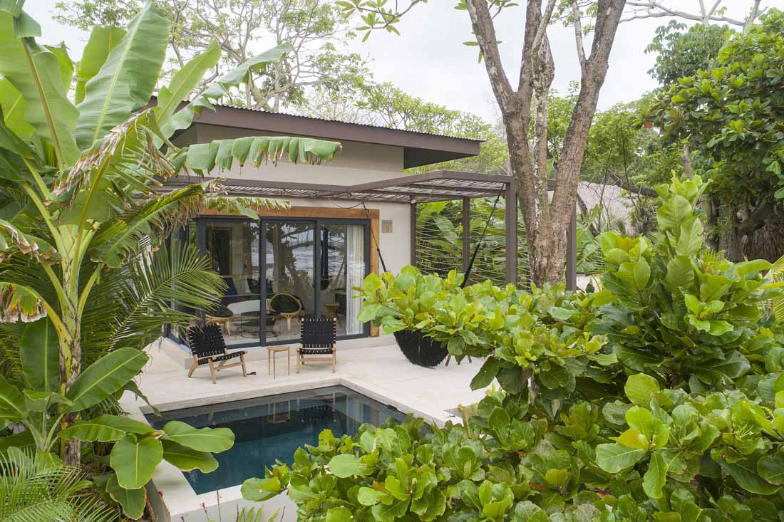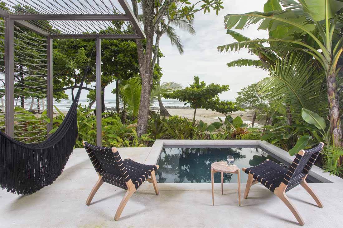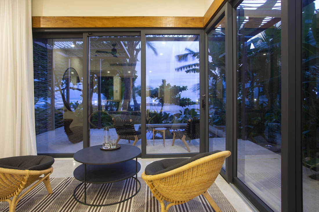 7间Ninta海滨平房的面积约为80平方米(800平方英尺),设有大床、室外露台、3.5米×3.5米(10×10英尺)的游泳池、吊床、宽敞的浴室和室内外淋浴。房间内的落地玻璃门充分利用卧室的角落,在客人和外部景观环境之间提供了一个开放的媒介,与此同时,其中所运用的与场地相协调的天然原材料,也为用户创造了另一种特殊的户外体验,周围的自然和海洋的声音,就是这片场地的天然优势。