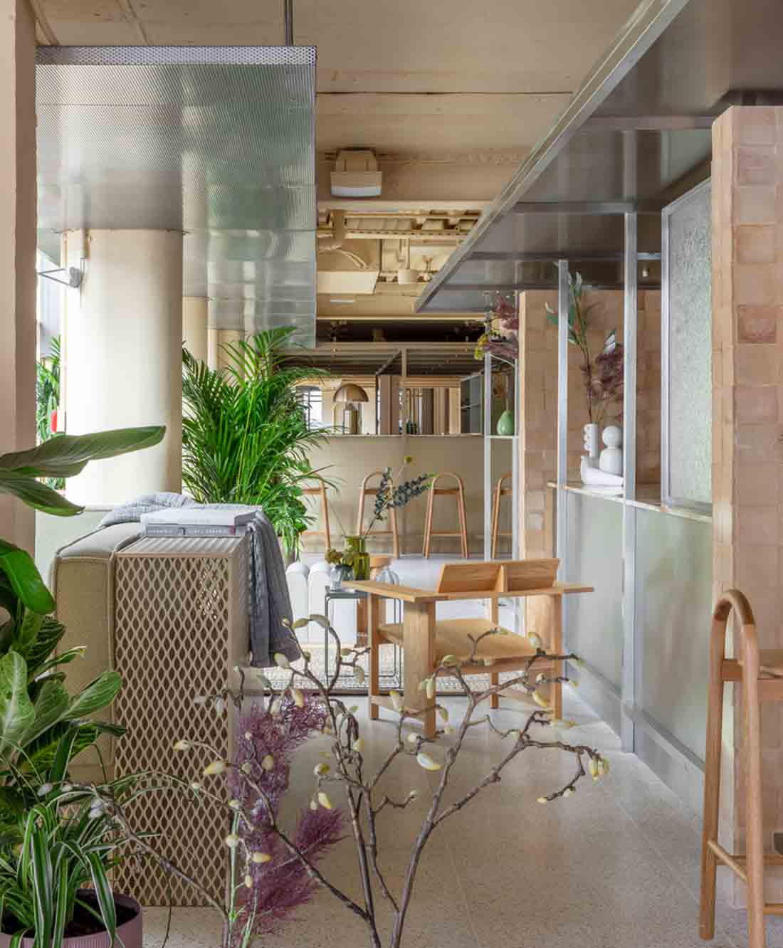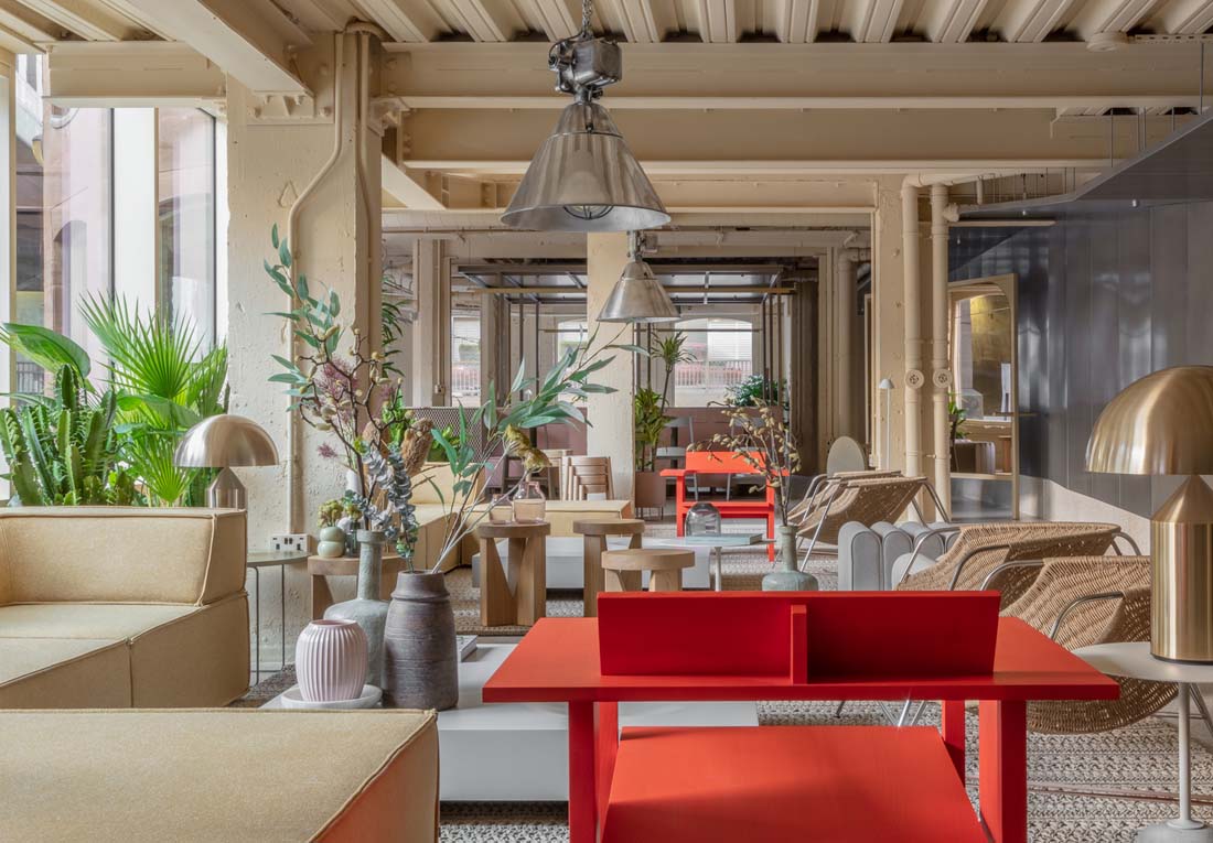 设计师对建筑物进行分段操作——删除了一些建筑面积以创建双倍高度的空间,同时将其缝合在其他地方以容纳更多客房,并在刚刚裸露的建筑物上添加了设计师的干预措施。