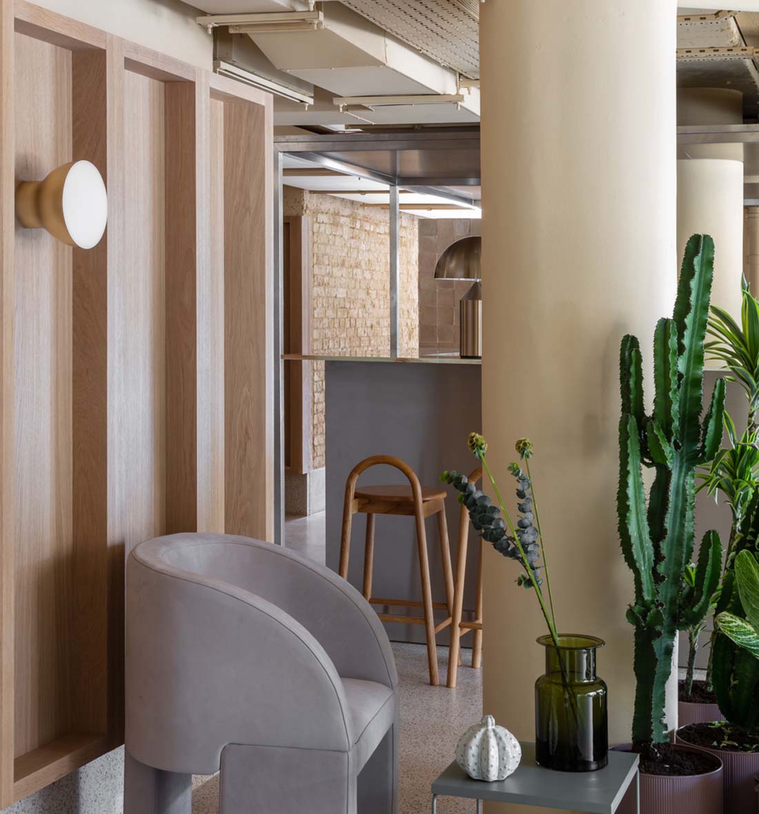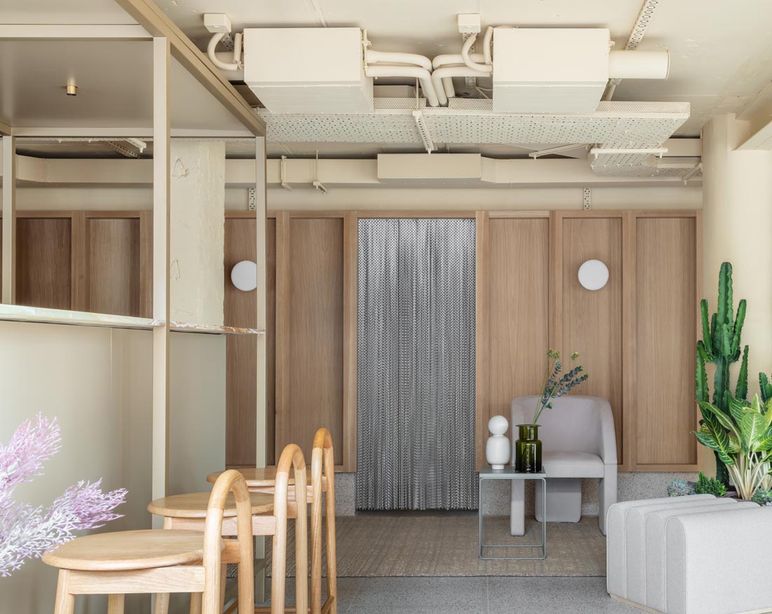 设计师采用了低矮的天花板,以营造绷紧,私密的公共空间,即使是在庆祝该计划的冗长以及在整个计划中看起来清晰的机会的同时。在这些庞大的体积中,对顶篷进行了分层设计,设计了移动屏幕并使用了结构元素,以暗示划分和界限,以免规模缩小了酒吧,休息室,咖啡厅和餐厅的默认划分中的温暖和舒适感。