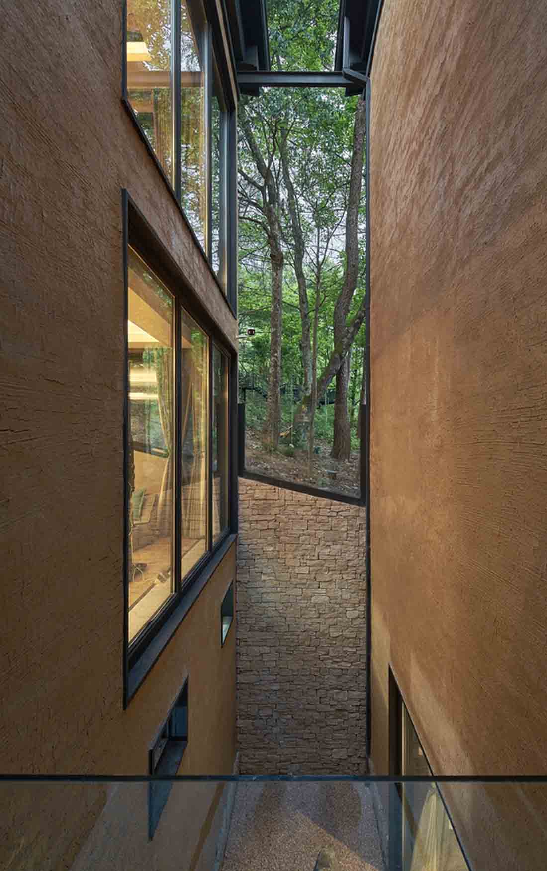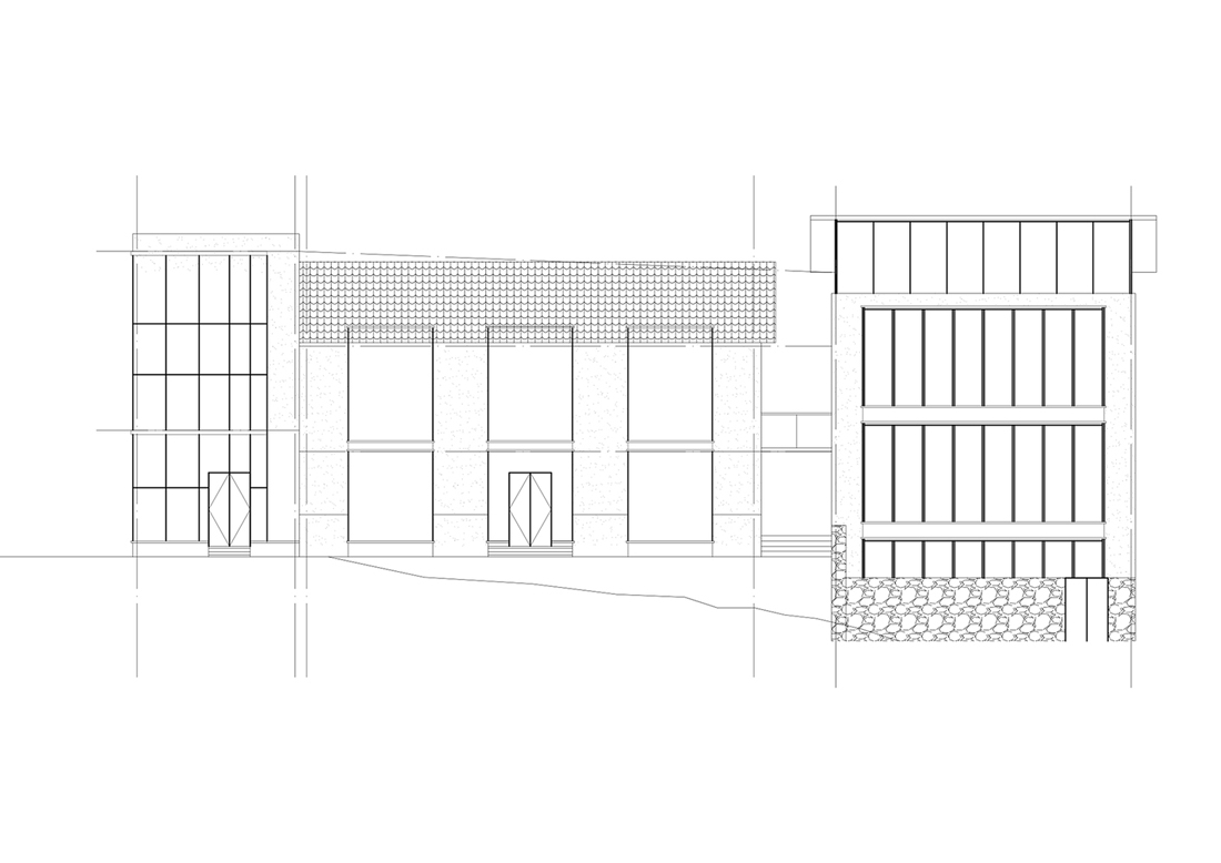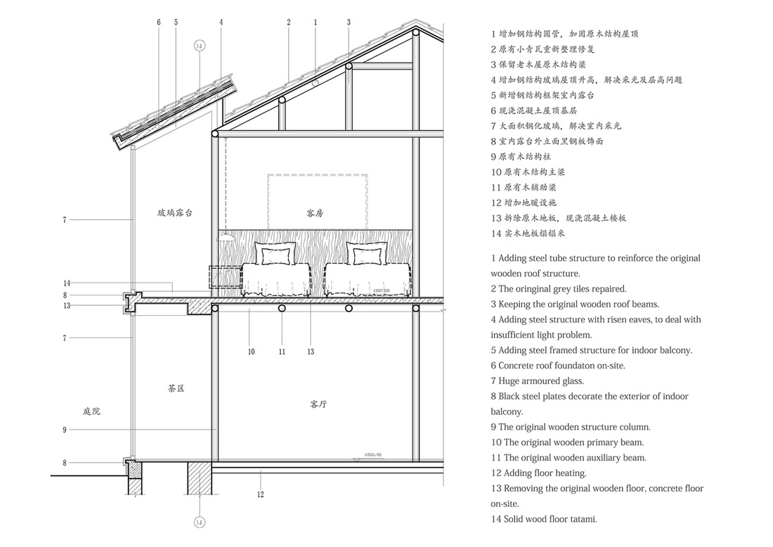 设计团队使用钢框架结构加固薄弱的泥墙,并在中间增加了巨大的落地玻璃窗,并增加了屋檐,以应对结构应力问题和光线不足问题。此外,他们根据实际情况相应地分配新建筑物。
