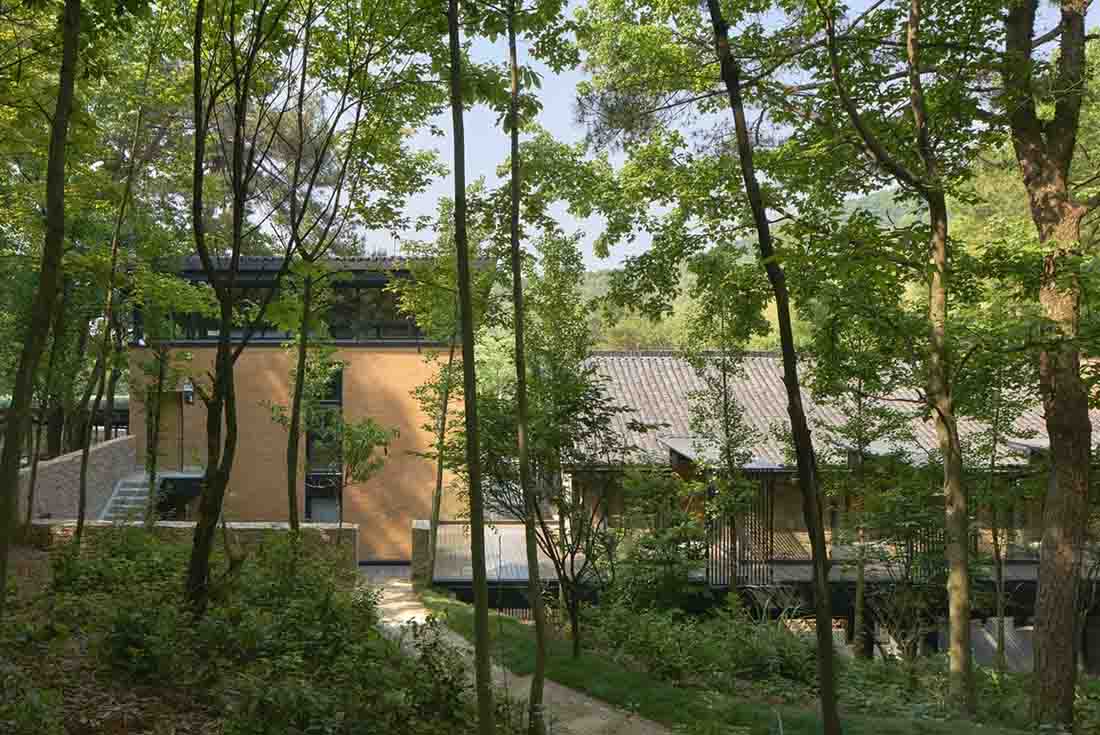 在中国浙江省建德镇八木田,一座新近装修过的别墅叫松树屋,藏在海拔700米的山丘上。它已从其主人的祖先遗产的基础转变而来,意在珍惜所有者童年时代对前院里松树的美丽月光的记忆。