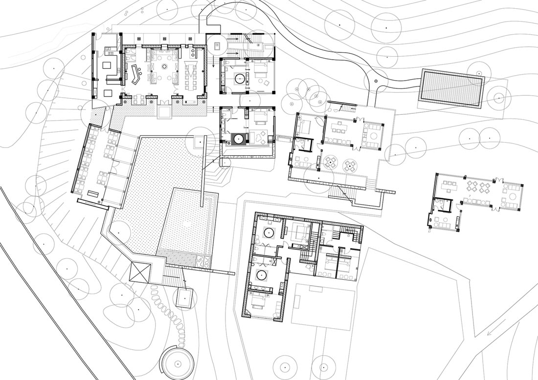 考虑周到地将所有房间入口定位在建筑物的背面,以保护隐私。最后,设计师诚实地保留了原始的墙壁,并简单地采用当地的木材,岩石和以前的器皿来加固和装饰房屋,从而在房屋和自然之间建立了尊重的联系。