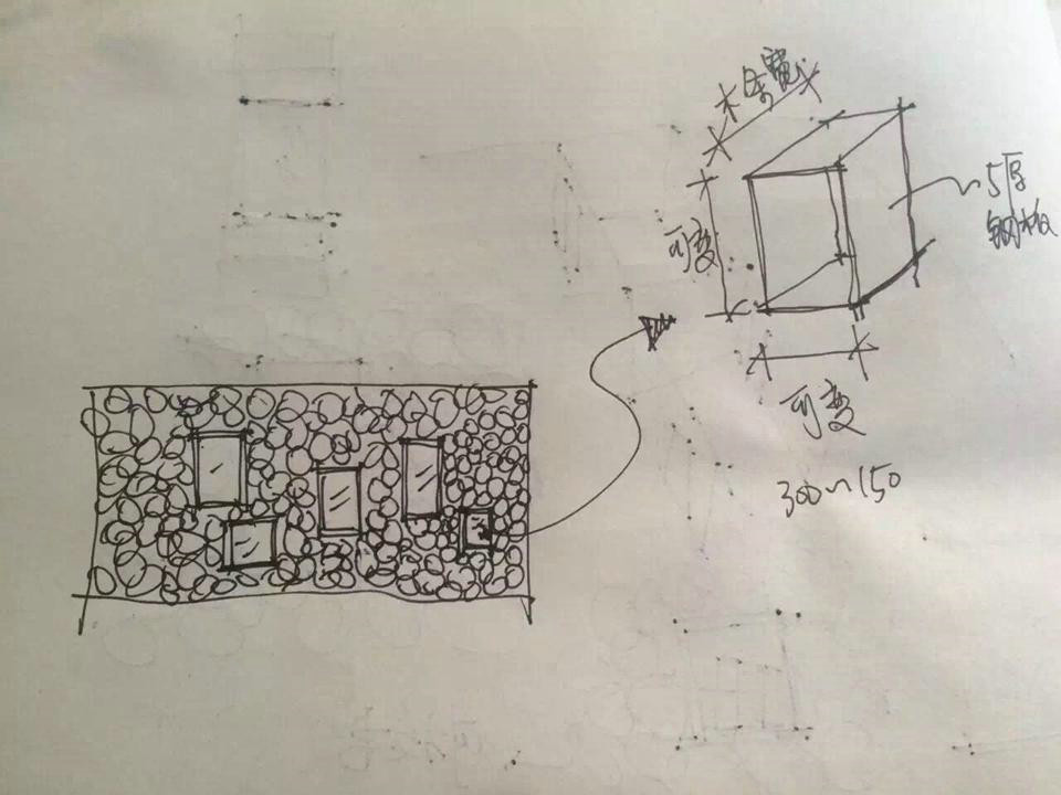 借此机缘,我们试图在此木墙上进行二次优化,来尝试和实验开窗。开窗的样式选用厚钢板,可以把边界做的更性感,也更稳固。为了便于推演和思考,我们进行了一个像素化的处理,然后我们再进行了一个标准的模块化,以两种模块500*500、500*1000进行切割,来进行摆放。