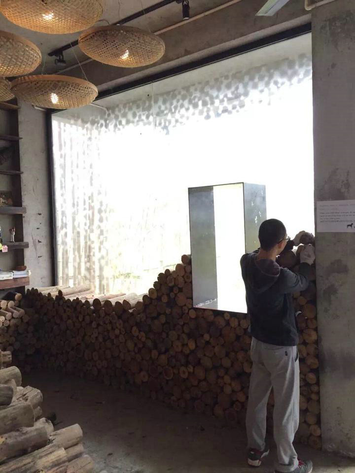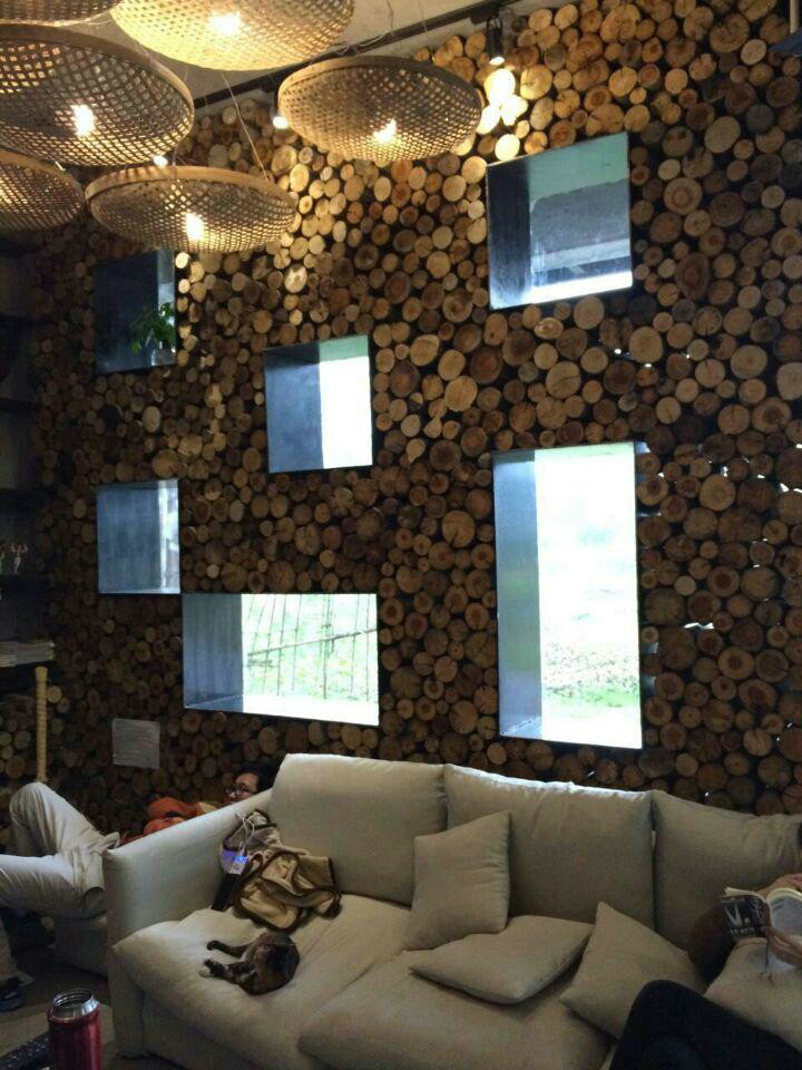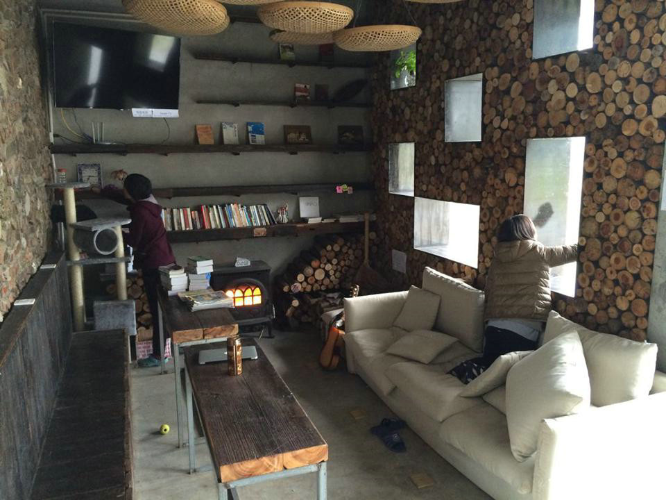这是一个有关设计优化中出现的开窗事件,地址位于阳朔东院弥香的一个客厅,我们最初的设计是以一个木头墙的形式来做的。
