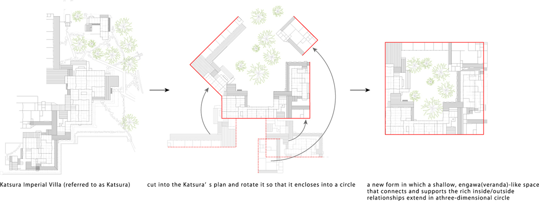 设计师将内部/外部空间关系“折叠”成紧凑形式。这导致了一种新形式,其中连接并支持丰富的内部/外部关系的类似于恩加纳河(游廊)的浅空间在三维圆中延伸,并在周围循环。