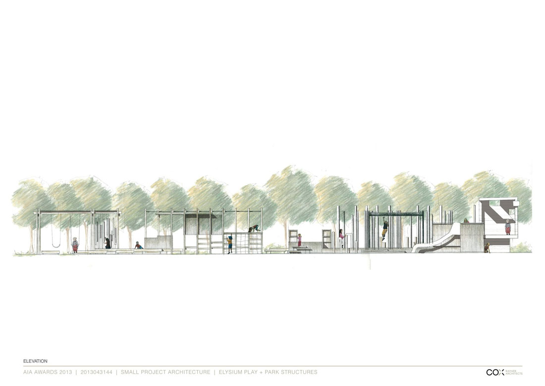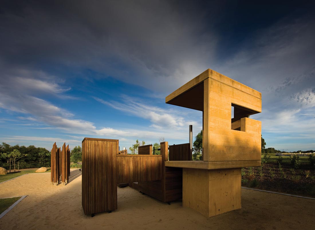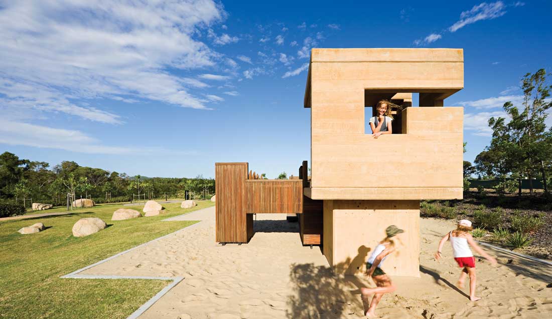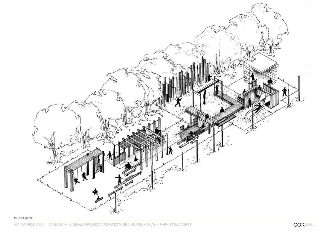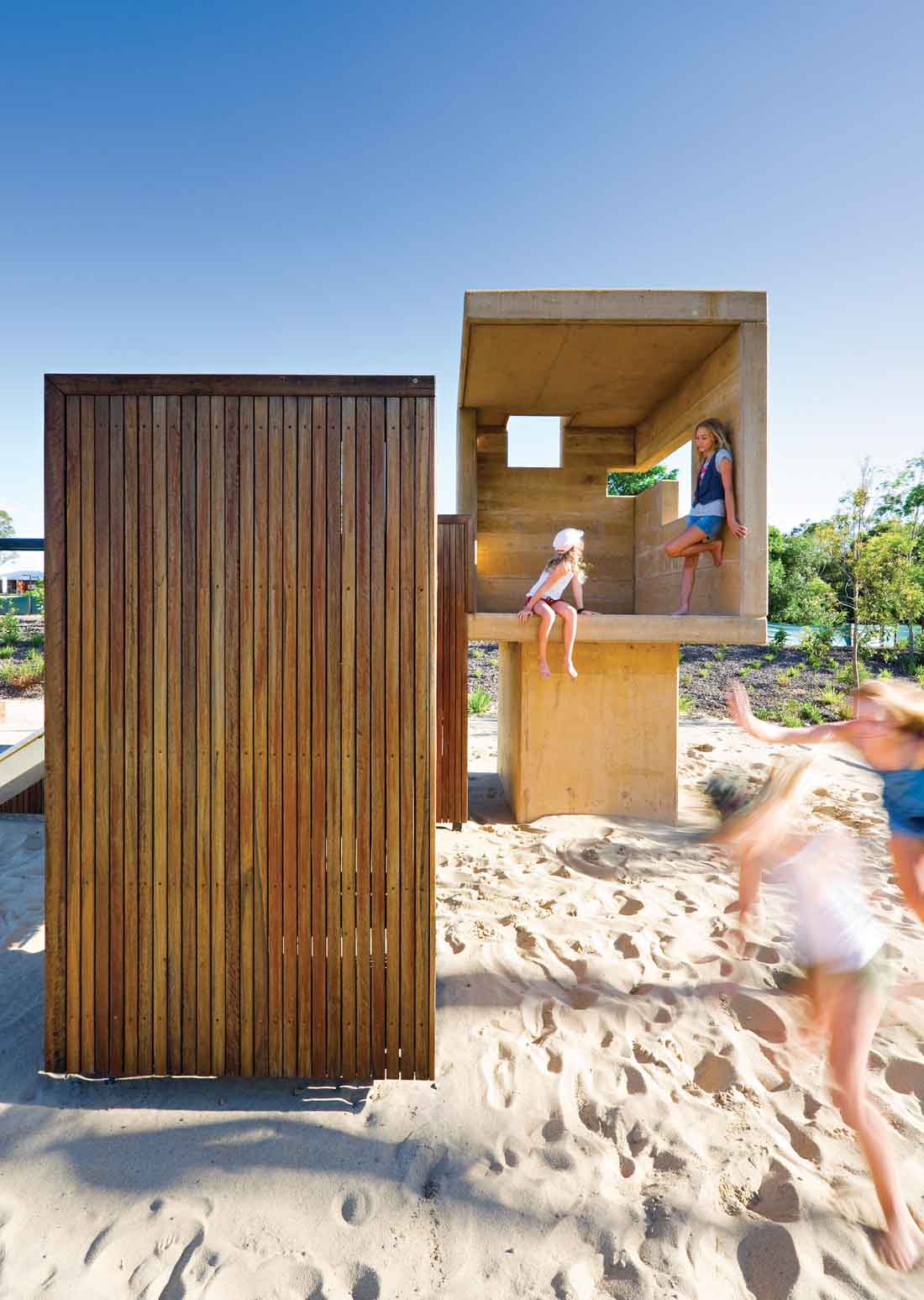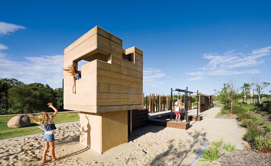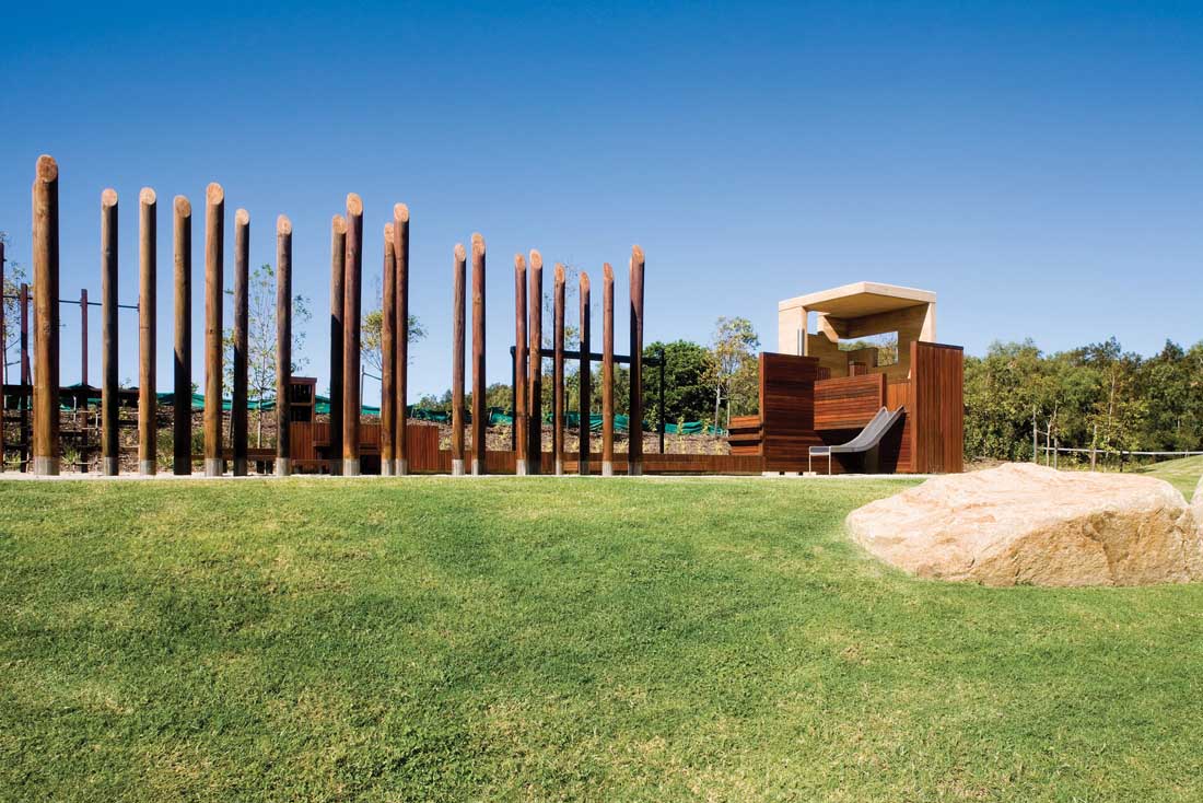 极乐世界游乐场是两个项目的代表之一,该项目包括一个游乐设施和一系列小型庇护所和元素,它们相互配合,为努萨一个新的居住社区的公园和街道提供了便利。这是为了庆祝昆士兰州阳光下的儿童而设计的,还可以作为社区娱乐场所。它是由混凝土和木材元素组成的线性序列,形成了独特的公园边缘,在光线的照射下产生阴影,是一种原始的装置艺术。