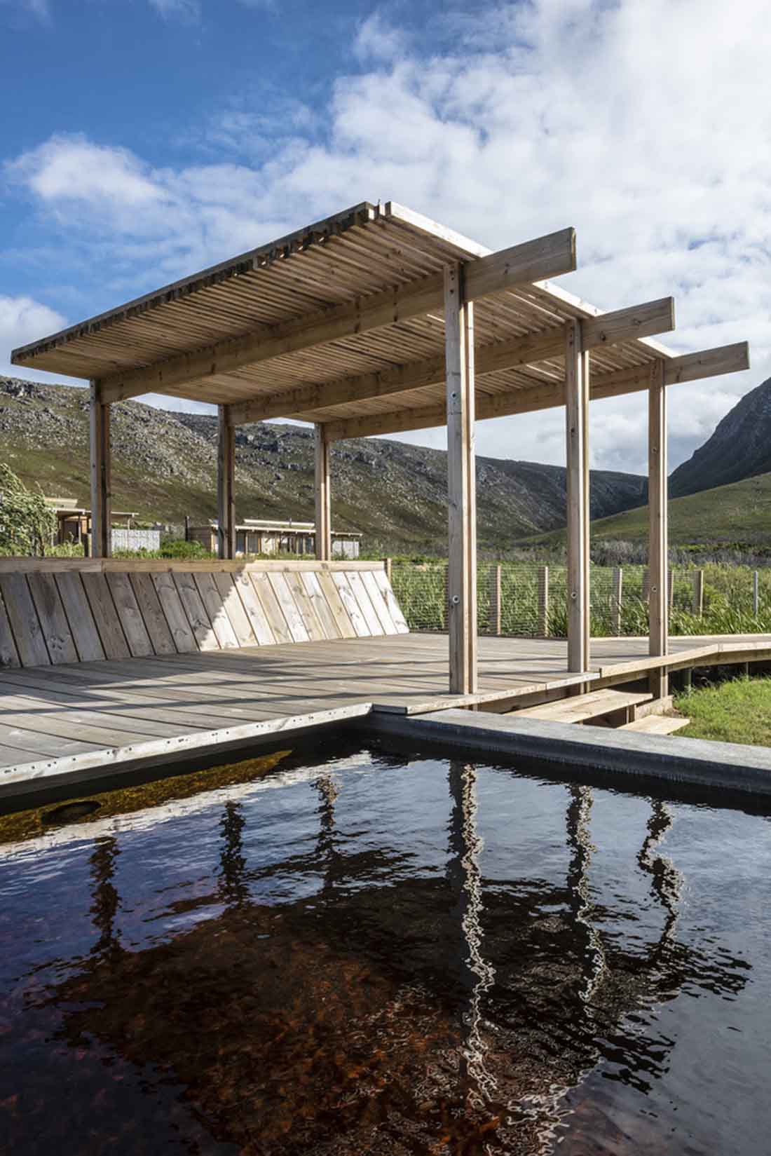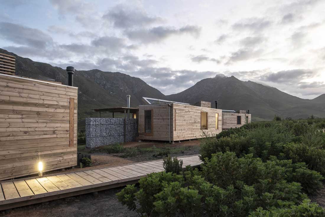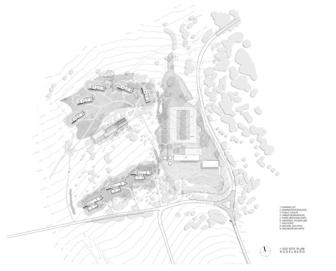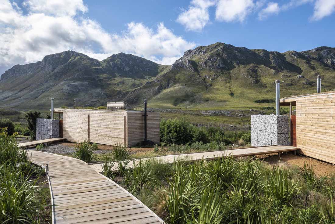 Kogelberg客栈的设计是通过仔细勘察了解其地形和植被而开始设计的。由此,在现场固定了一些小工作区,以最小化的损害和对现有植被的影响的方式来定位客栈。浮动木板人行道以减少游客对自然景观的影响。