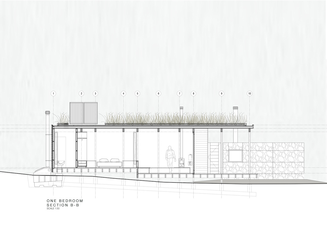 这些设备旨在适应该地区的天气和气候。墙壁、屋顶和地板上的高规格隔热板可让设备在冬暖夏凉。凉棚上的木板条状遮阳帘控制着甲板上的夏日阳光。精心挑选的本地特有草种在屋顶上,便于维护。土壤的质量改善了屋顶的热质。