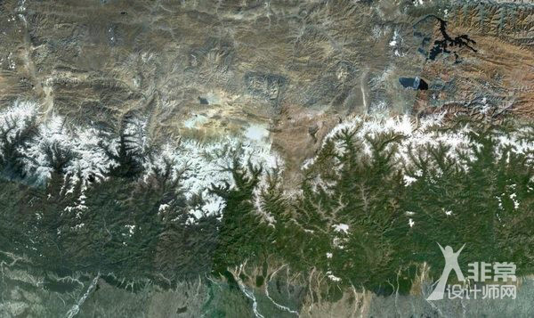 这是喜马拉雅山的山脉,这边是青藏高原,这边白色的是山脊的位置,这面是坡面,我们可以看到这条线就是山脊的线,很明显的两极分化。