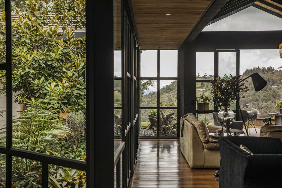 第一栋房屋包含社交区域,并垂直于山脉的远景和到达地垂直放置。第二栋房屋与森林景观垂直,与山峦平行,包含主房间及其服务区域,一间业余爱好工作坊和一间社交浴室。