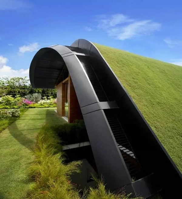 5.该房屋,完美地草坪屋顶融入到大山大的建筑,傻傻地分不清山坡啦。